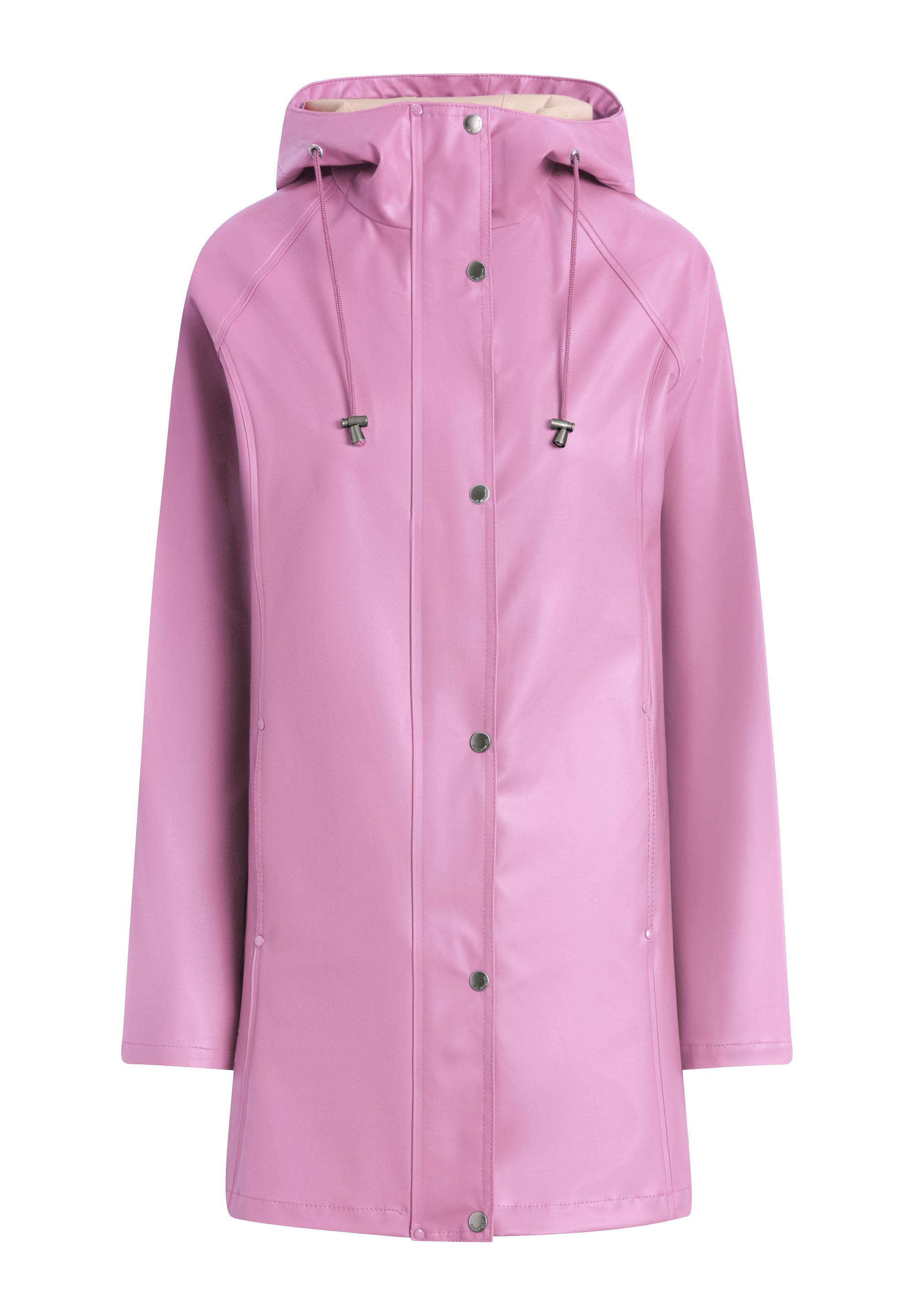 Eine leichte, feminine Regenjacke mit Oberschenkellänge. Das Modell verfügt über eine funktionelle Kapuze mit dezenter Logoprägung, seitliche Eingriffstaschen, Knopfverschluss am unteren Ärmel und einen 2-Wege-Reißverschluss. Innen ist das Modell sauber und fein verarbeitet und mit einem passenden Logoband versehen. Die Qualität ist ein leichtes und weiches wasserdichtes gummiertes PU mit Polyestertrikot auf der Rückseite und alle Nähte sind doppelt verschweißt. Das Modell ist in vielen klassischen und saisonalen Farben erhältlich.