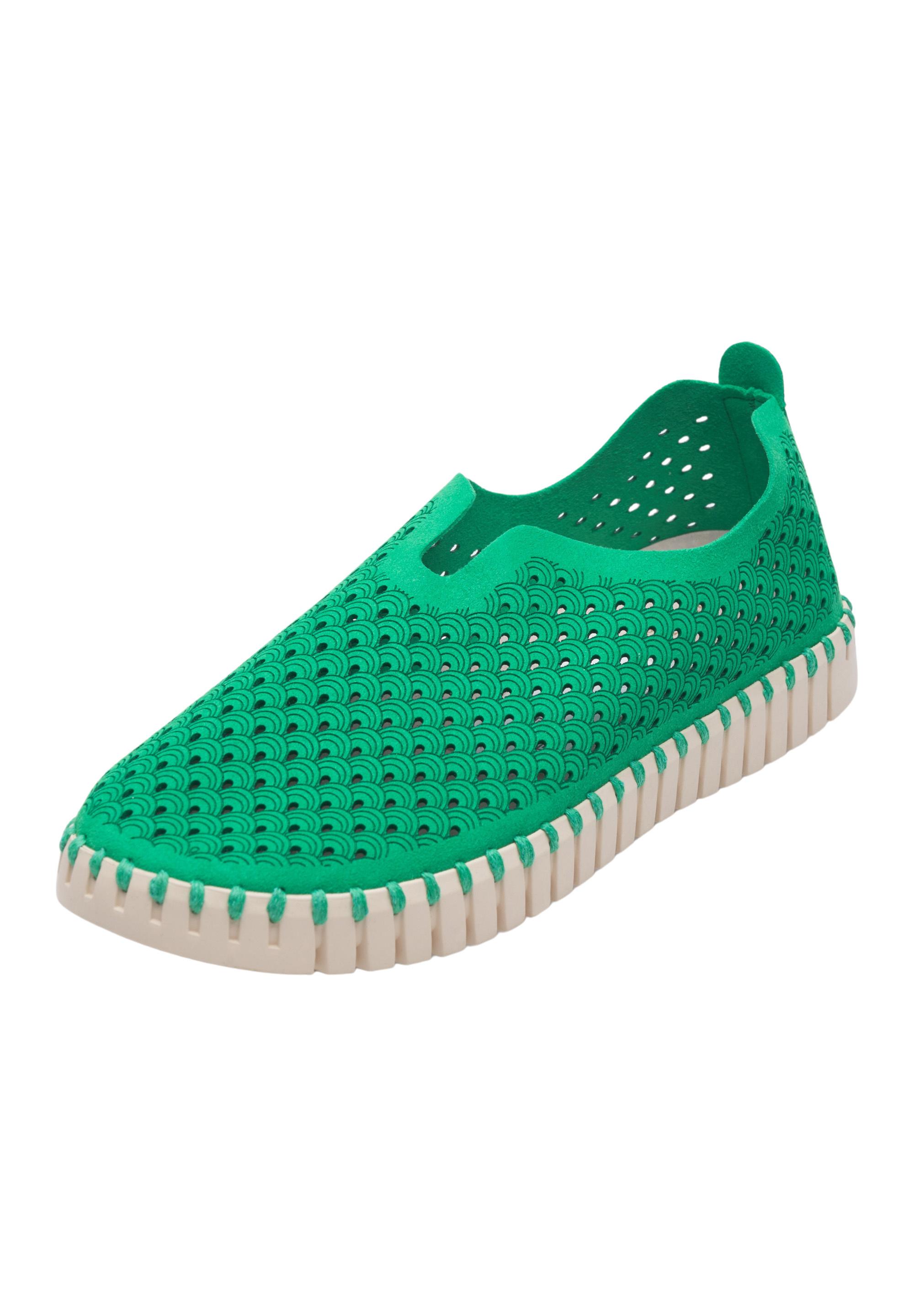 Der legendäre Tulip3275 überzeugt schon beim ersten Anziehen durch seinen hohen Tragekomfort. Der Slipper ist leicht, bequem und praktisch durch sein Obermaterial aus luftdurchlässiger recycelter Mikrofaser mit Lasercut-Muster, das sich beim Tragen weitet. Die flexible Laufsohle besteht aus Naturkautschuk und recyceltem Kautschuk und ist mit farblich passendem, recyceltem Garn ohne Klebstoff genäht. Die mit Schweineveloursleder gefütterte, gepolsterte Innensohle stützt und sorgt für hohen Komfort. Mit einer Vielzahl von Farboptionen sind diese Schuhe die ideale Kombination aus Mode und umweltbewussten Entscheidungen. Fällt eng aus, bitte eine Größe größer bestellen.
