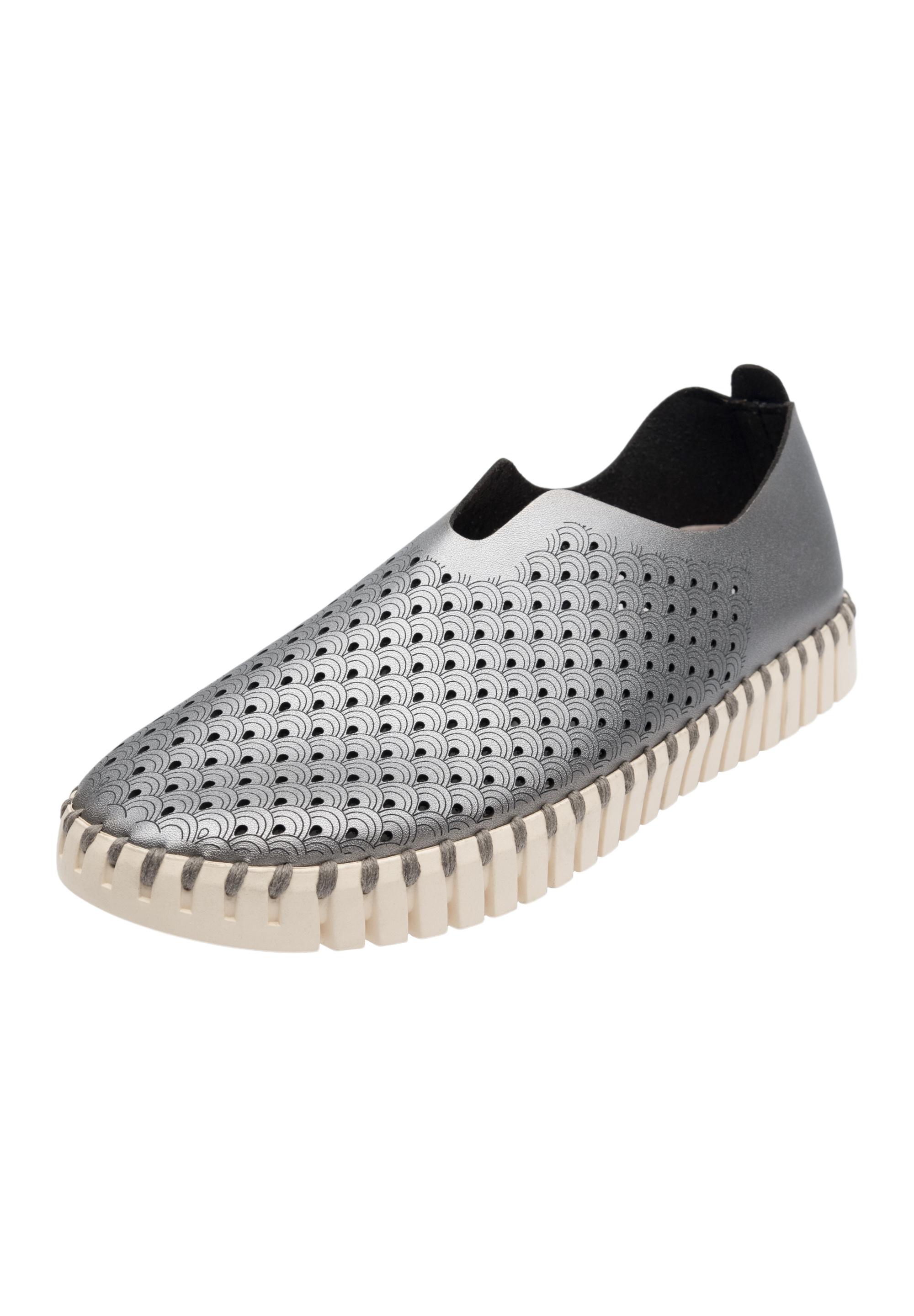 Der Tulip3576 ist eine metallisch glänzende Variante unseres bequemen Slippers für alle Gelegenheiten. Mit seiner flexiblen Laufsohle aus Naturkautschuk und dem atmungsaktiven Obermaterial mit Lasercut-Muster aus recycelter Mikrofaser ist er praktisch, bequem und sieht toll aus. Die flexible Laufsohle besteht aus Naturkautschuk und recyceltem Kautschuk und ist mit farblich passendem, recyceltem Garn ohne Klebstoff genäht. Die mit Schweineveloursleder gefütterte, gepolsterte Innensohle stützt und sorgt für hohen Komfort. Fällt klein aus, bitte eine halbe Größe größer bestellen.