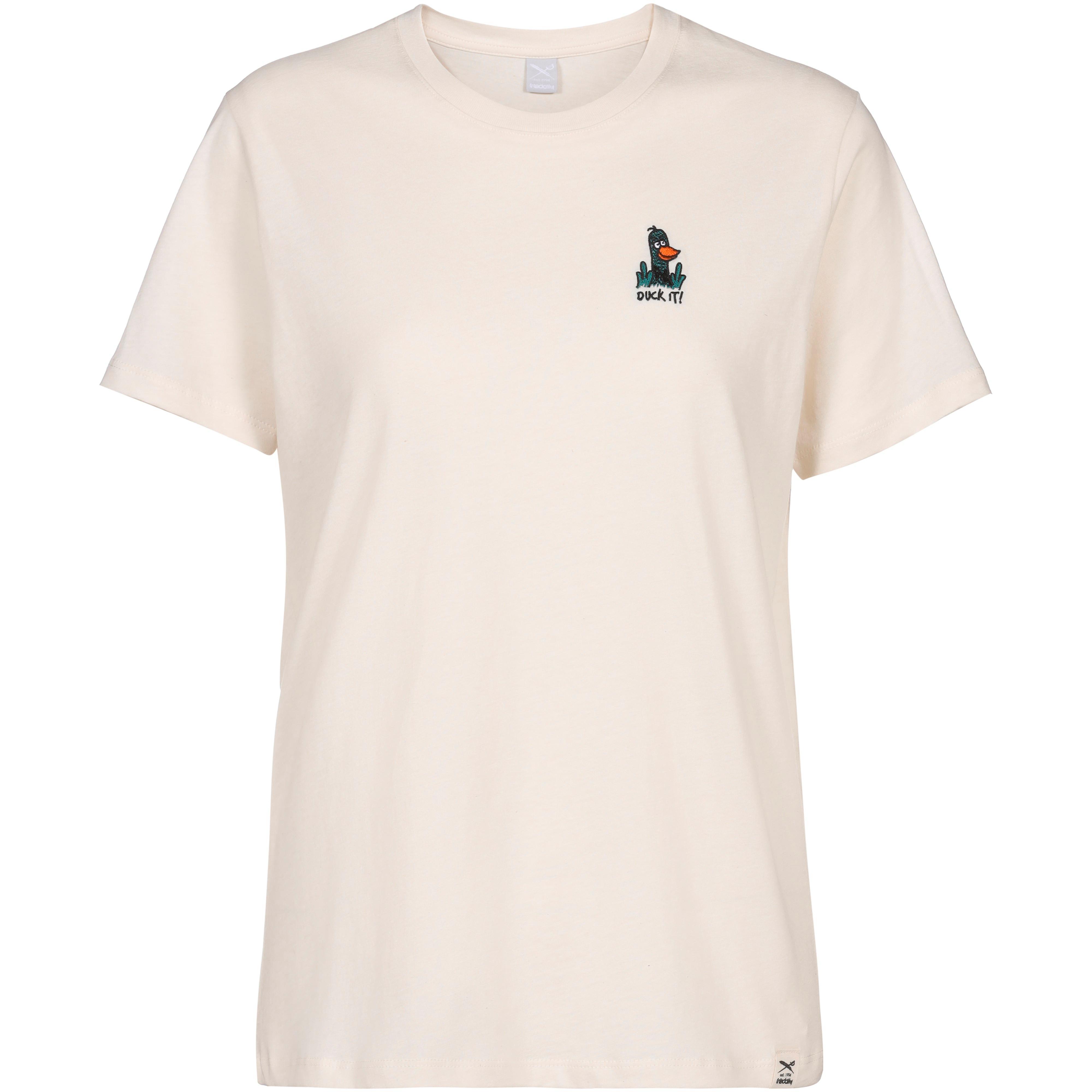 T-Shirt mit origineller Entenstickerei; gerippter Rundhalsausschnitt mit weichem Nackenband; Fair-Wear-Produkt; vegan; Made in Portugal; Material 100% Baumwolle (Biobaumwolle).