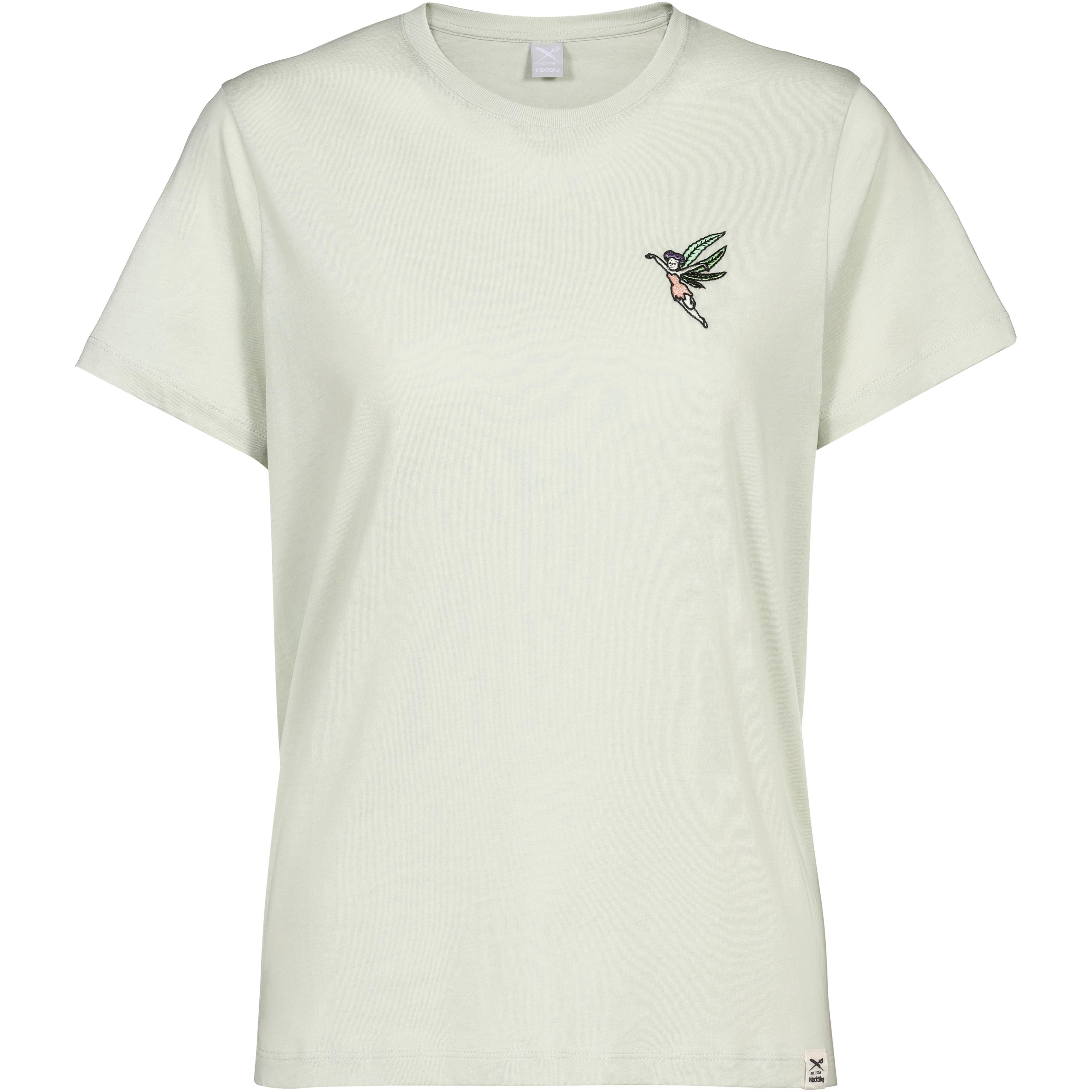 T-Shirt mit hübscher Feenstickerei; Rundhalsausschnitt mit weichem Nackenband; Fair-Wear-Produkt; vegan; Made in Portugal; Material 100% Baumwolle (Biobaumwolle).