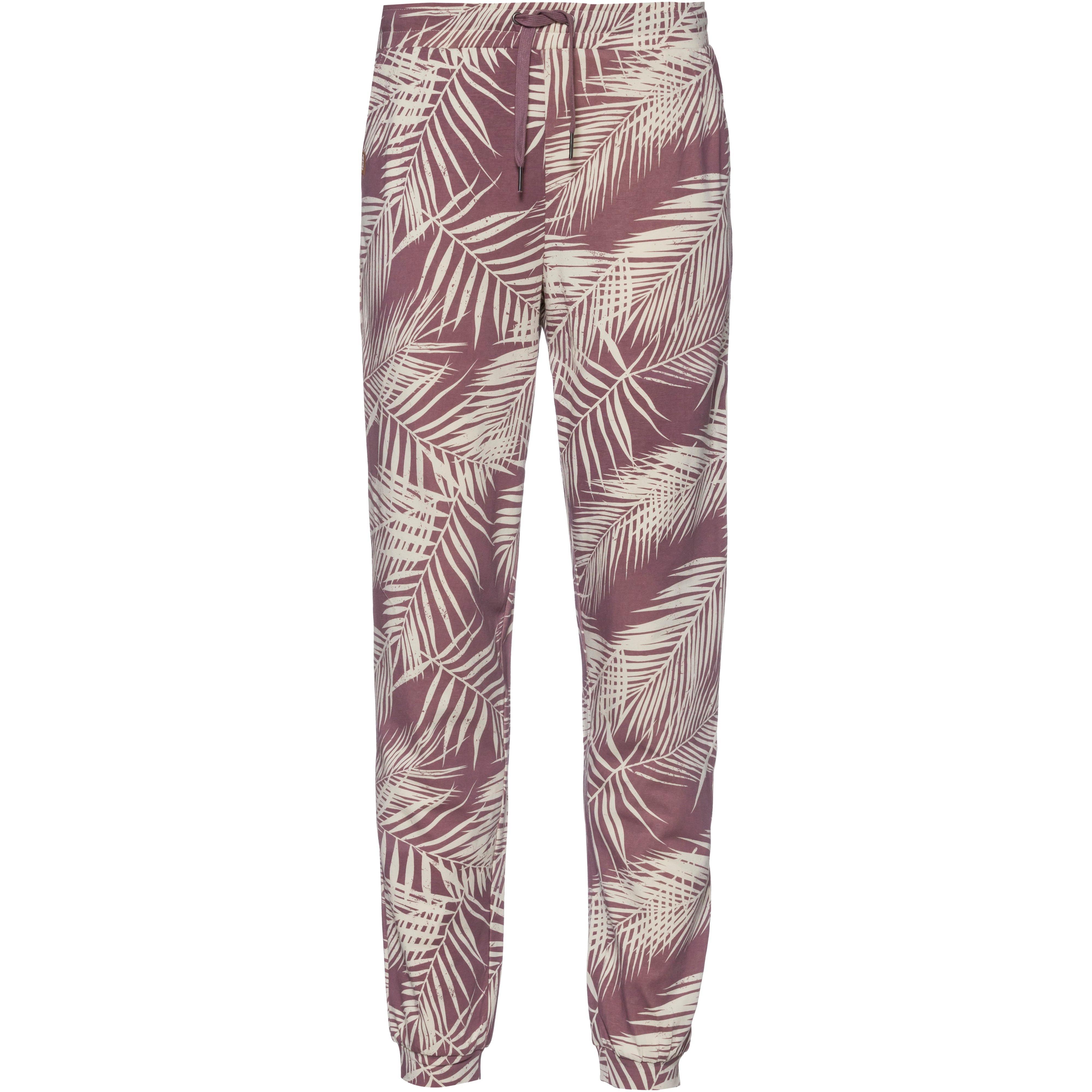 Hose aus mit Palmenmuster bedrucktem Jersey; Elastikbund mit Kordelzug; 2 schräge Eingrifftaschen; schmale Beinbündchen; Material 95% Baumwolle, 5% Elastan.