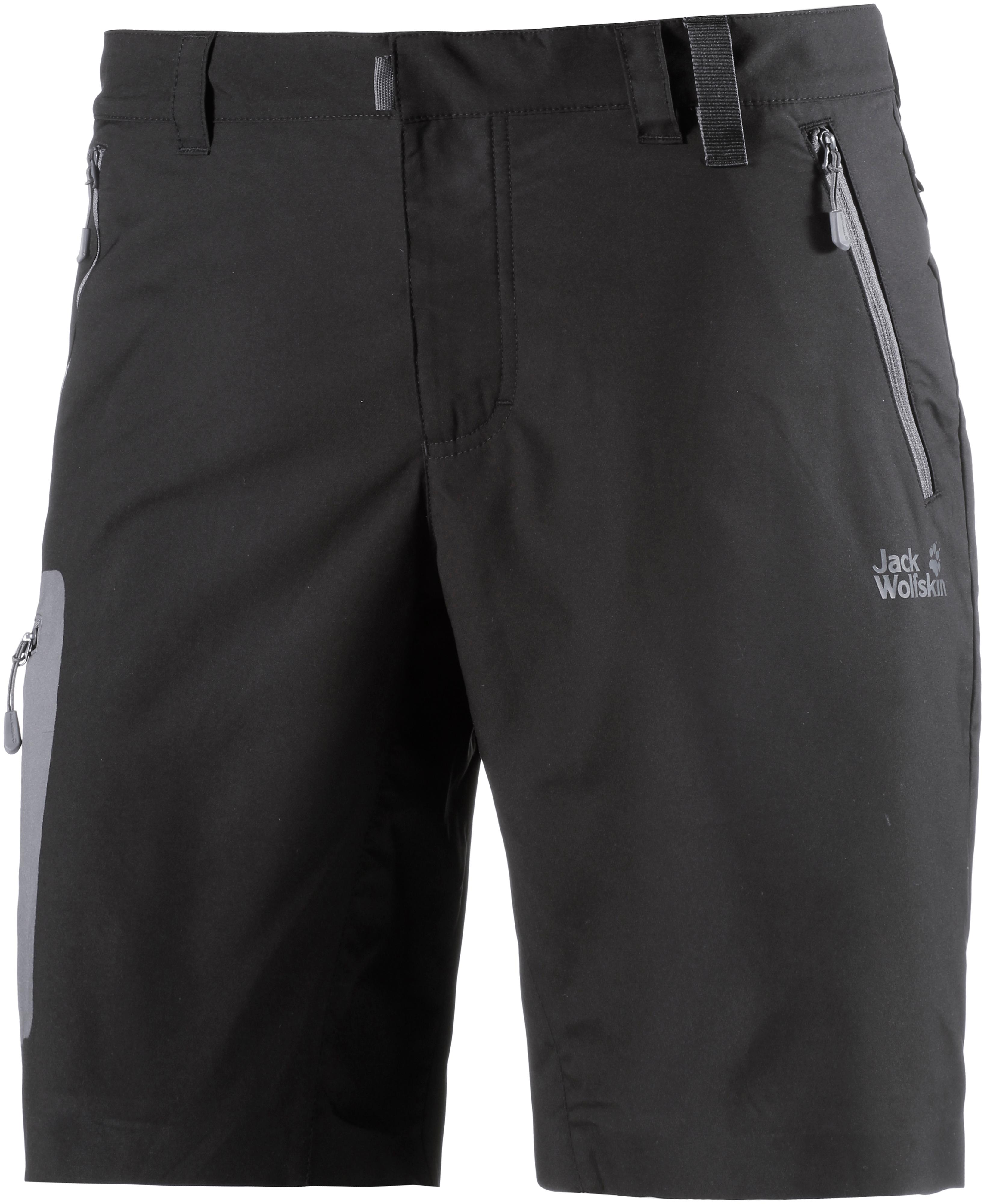 Wandershorts aus elastischem Gewebe; Bund mit Gürtelschlaufen, Druckknopf und Reißverschluss; 2 Reißverschlusstaschen mit Meshfutter und Zip-Garage; 1 Beintasche mit Reißverschluss; wind- und wasserabweisend sowie hochatmungsaktiv durch Flexshield-Funktion; Logo-Print; ohne PFC hergestellt; Seitenlänge: ca. 50 cm/Gr. 50; Material 100% Polyester.