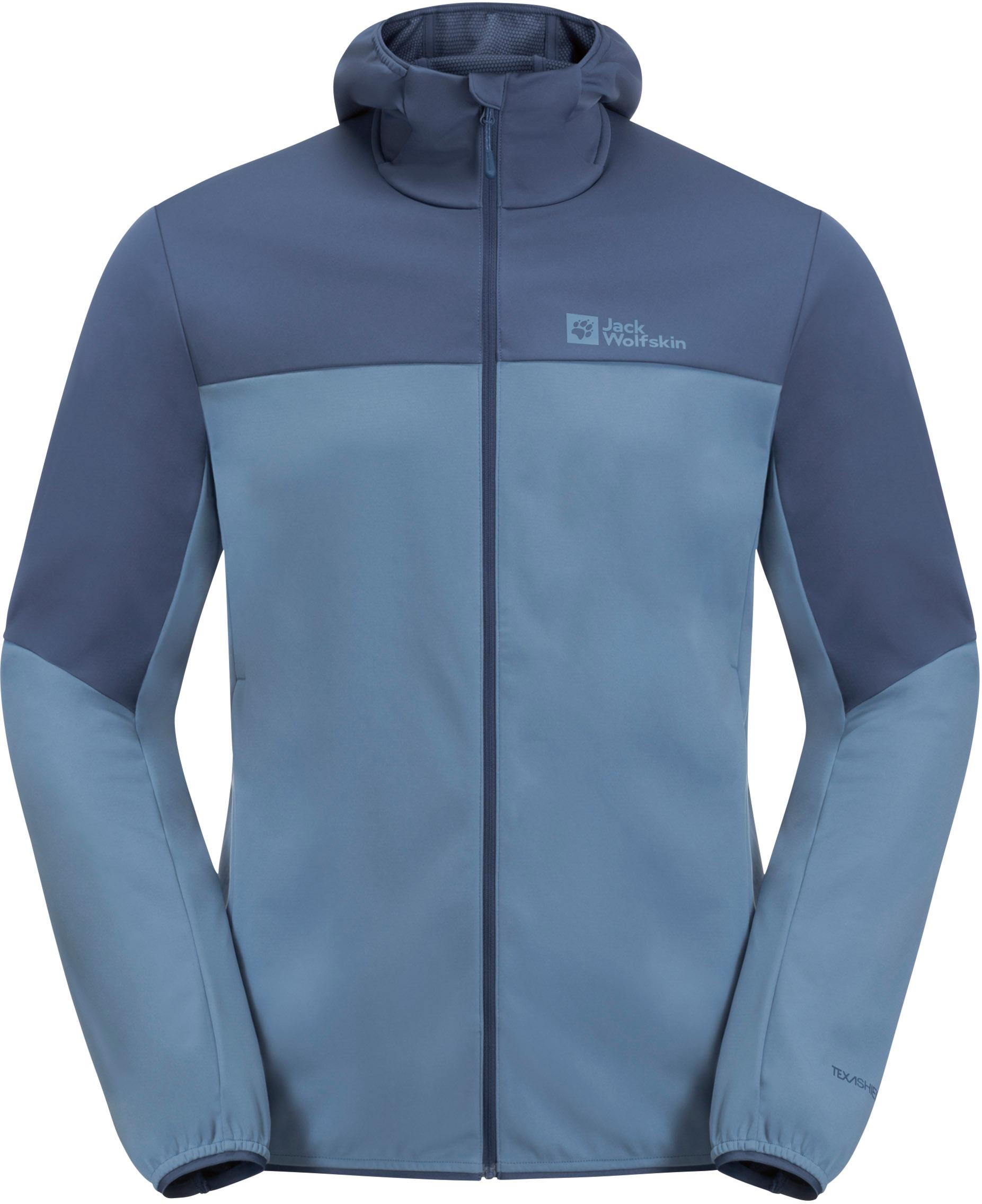Softshelljacke aus Texashield Pro Material in 3 Lagen; winddicht, wasserabweisend und atmungsaktiv; elastisch; enganliegende Kapuze mit hohem Kragen; durchgehender Frontreißverschluss mit Kinnschutz; 2 Eingrifftaschen mit Reißverschluss; elastische Ärmelbündchen; Material 100% Polyester.