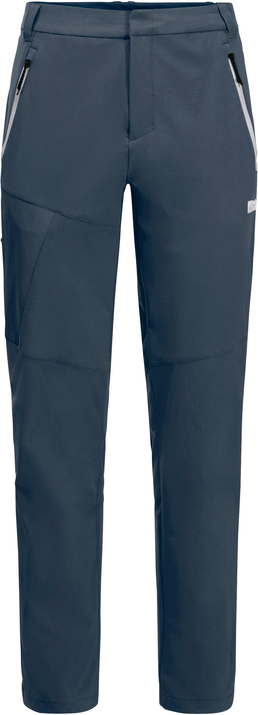 Elastische Softshellhose aus Texashield Core-Material; wind- und wasserabweisend sowie atmungsaktiv; Bund mit Gürtelschlaufen; 2 Hüfttaschen, Gesäßtasche und Beintasche mit Reißverschluss; vorgeformte Knie; 91% Polyamid, 9% Elastan.
