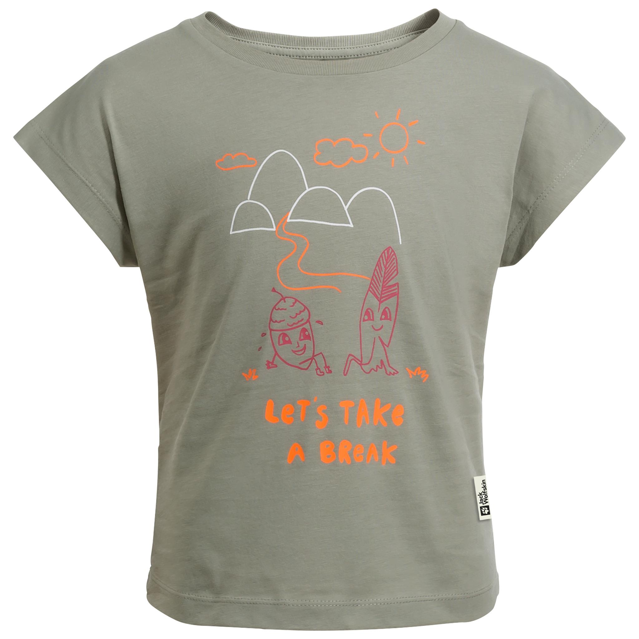 Alle Eltern wissen, wie wichtig es ist, beim Wandern mit Kindern ab und zu eine Pause einzulegen. Dieses Baumwoll-T-Shirt greift die Idee "Take a break" in einem niedlichen Print auf, das Mädchen lieben werden.