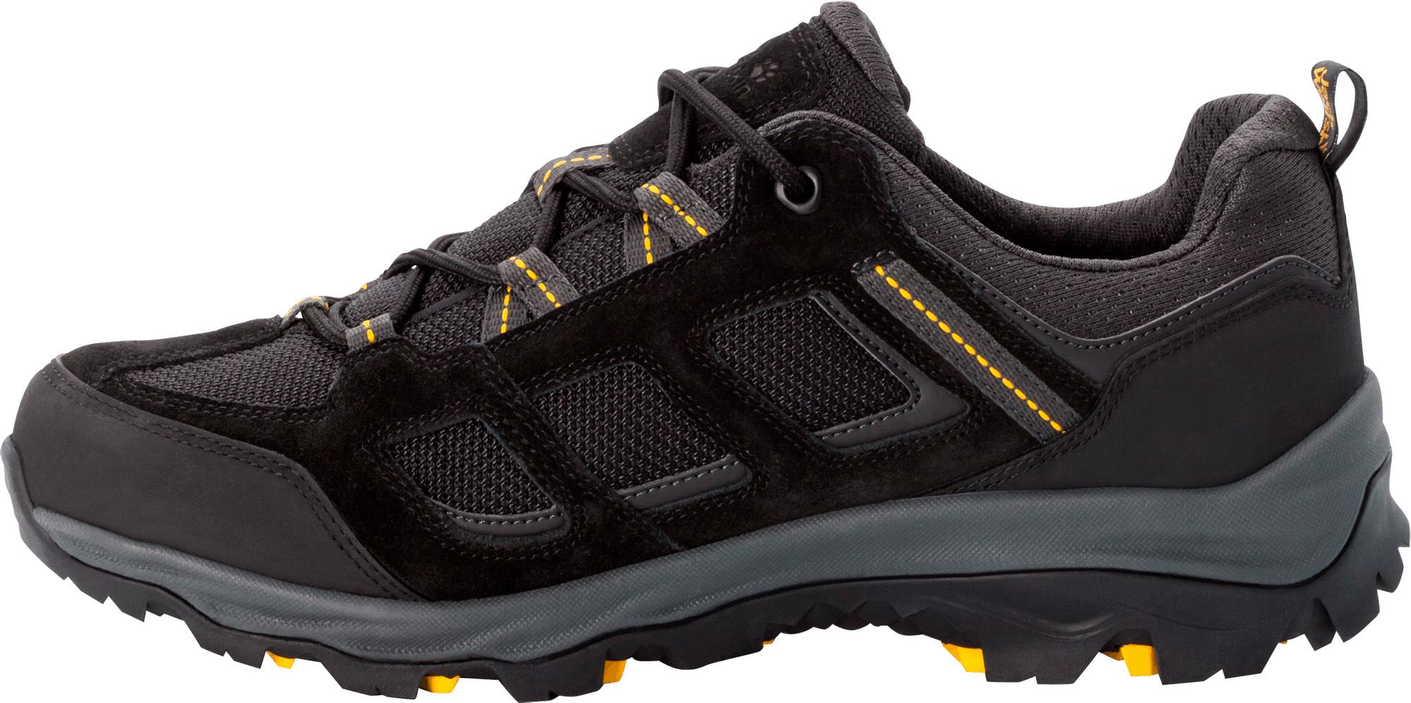Flache Schuhe zum Wandern mit strapazierfähigem Obermaterial aus Textil und Suedeleder; Schnürung mit Zugschlaufen und Metallösen; schützende Zehen- und Fersenkappe; gepolsterter Schaft mit Einstiegslasche; Textilfutter; EVA-Mittelsohle; dämpfende, trittsichere Gummisohle; griffiges Profil; wasserdichte und atmungsaktive Texapore Membran; Aktivitätsindex: A (Hiking); Gewicht: ca. 890 g/Gr. 8 (Paar).