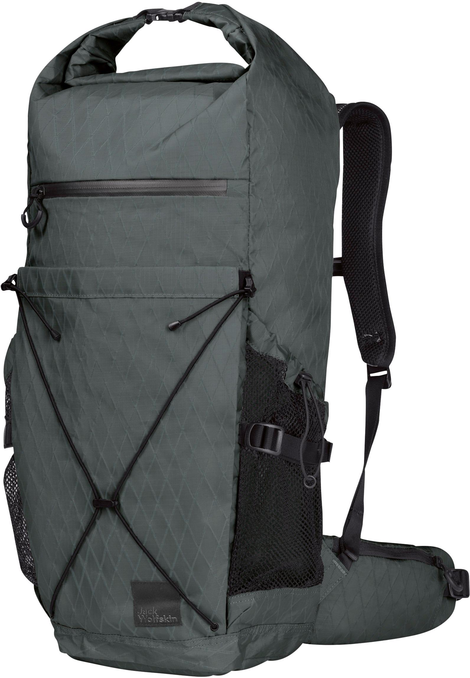 Rucksack mit Rolltop-Verschluss; gepolsterter Rücken; Schulterträger und Brustgurt individuell verstellbar; Hüftgurt mit Reißverschlussfach am rechten Flügel; gepolstertes Laptopfach für Geräte bis zu 15 Zoll; Innenfächer und Frontfächer; Netzseitentaschen; mit Trinksystem kompatibel; Bungee-Kordel auf der Vorderseite; integrierte Regenhülle; ohne PFC hergestellt; Maße (H/B/T): ca. 53 x 28 x 26 cm; Volumen: 30 l; Gewicht: ca. 1110 g; aus Polyester und Polyamid.