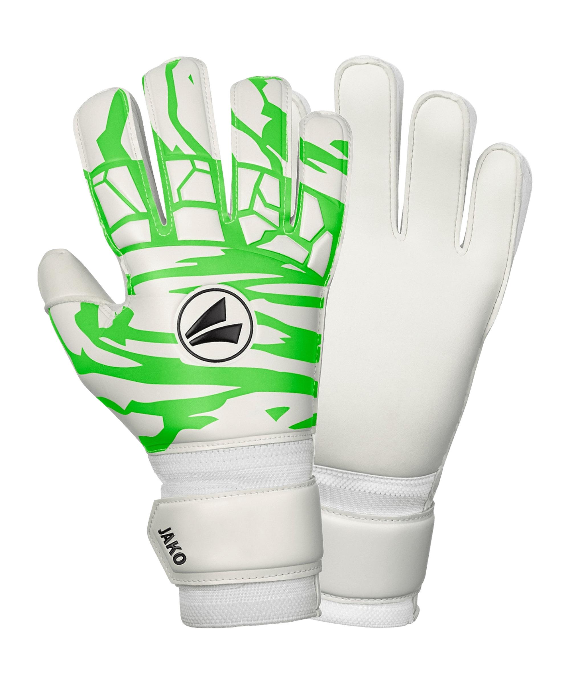 Bestens ausgerüstet bist du mit dem super bequemen Modell in Weiß. JAKO hat mit dem Handschuh ein wirklich hervorragendes Produkt erschaffen. Die bequeme und atmungsaktive Funktionsweise lässt ihn überzeugen. Er bietet dir einen optimalen Schutz und eine hohe Strapazierfähigkeit. Auch fest geschossene Bälle kannst du mit den Handschuhen ohne Bedenken sicher abwehren. Produktdetails: Eigenschaften: bequem, atmungsaktiv Material: 100% Elastodien