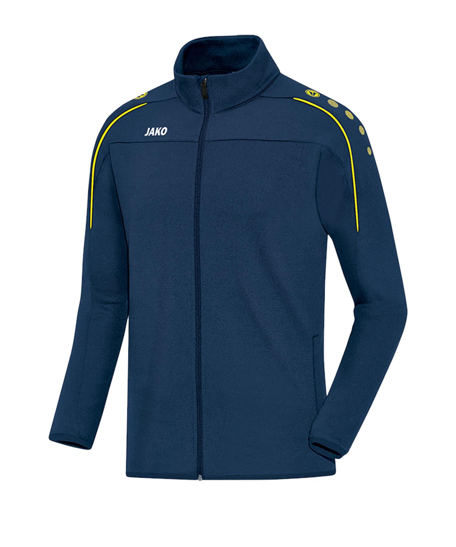 Vereint in den Farben – die super bequeme Classico-Sportjacke in Blau lässt euch euren Zusammenhalt als Mannschaft zeigen. Mit der Sportjacke aus dem Hause JAKO kann man absolut nichts falsch machen. Sie ist atmungsaktiv, super bequem und leicht. Bei Präsentationen oder vor und nach dem Match macht ihr hiermit einen grandiosen Eindruck. Ein schnelles und bequemes Verschließen dieser Jacke macht der Reißverschluss möglich. Praktisch und sicher lässt sich euer Hab und Gut in der inneren Tasche und in den seitlichen Zip-Taschen verstauen. Egal, wie hart das Training ist, mit diesem Modell seid ihr immer bestens gekleidet. Produktdetails: Lieferbar bis voraussichtlich 2022 Stauraum durch innere Tasche und seitliche Zip-Taschen Langärmlig Eigenschaften: atmungsaktiv, super bequem, leicht Material: 100% Polyester
