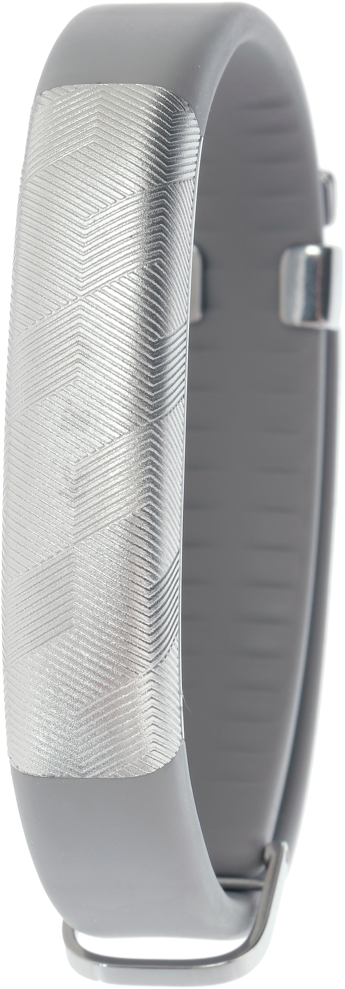 Jawbone UP2. Fitness-Tracker in angenehm leichter und schmaler Konstruktion fürs Handgelenk, zeichnet die tägliche Stundenzahl im Schlafmodus sowie unterschiedliche Daten der Tagesaktivitäten auf. Details: drahtlose Erfassung von Kalorienverbrauch, Trainingseinheiten, Schrittanzahl, Nährstoffe u.s.w.; spritzwassergeschützt; LED-Display; Beschleunigungsmesser; Akku hält bis zu 7 Tage; kompatibel mit iPhone 4s, iPad 3rd Gen, iPod 5th Gen, iPad mini, Android 4.3, Bluetooth® Smart Ready; mit über 50 Apps und Geräten verbindbar.