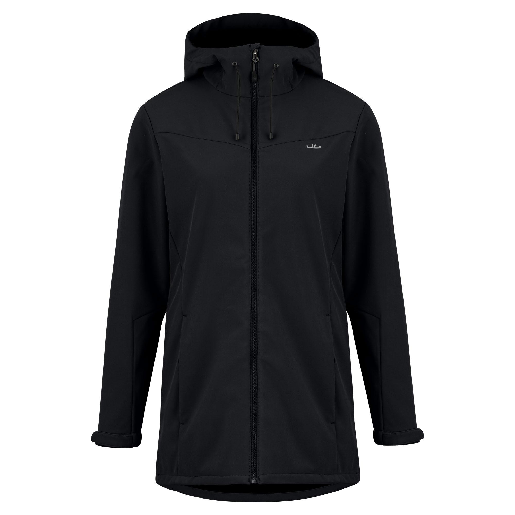 Beste Bekleidungstechnik leger verpackt. Damen Softshell Kurzmantel vom Feinsten. 3- lagiger Materialaufbau mit bi-elastischem Oberstoff, Membran und Fleece- Innenseite. Das Material ist wasserdicht, winddicht und atmungsaktiv. Die Nähte sind durch innenliegende Verstärkungen nahezu wasserdicht. Verdeckte Reißverschlusstaschen. Lässiger Hoodielook mit weiblichem Schnitt. Der Rücken ist ca. 4 cm länger als die Frontpartie. Dezente Jeff Green Stickerei. Du wirst den pflegeleichten Jeff Green Softshell Kurzmantel Alicia im täglichen Einsatz lieben. Der elastische Oberstoff ermöglicht dir eine enorme Bewegungsfreiheit, die gefleecte Innenseite bewirkt einen schnellen Feuchtigkeitstransport und gewährleistet einen hohen Kuschelfaktor für einen derart technikbetonten Kurzmantel. Bitte beachte, dass eine Softshell-Konstruktion keine vollwertiger Regenschutz ist; auch wenn das Obermaterial wasserdicht ist, so können bei diesem Produkttyp die Nähte nicht wasserdicht verschweißt werden. Alle Nähte werden bei uns innenliegend mit Verstärkungsband gedoppelt, was für guten Wetterschutz sorgt, aber bei starkem Regen an seine Grenzen stößt.