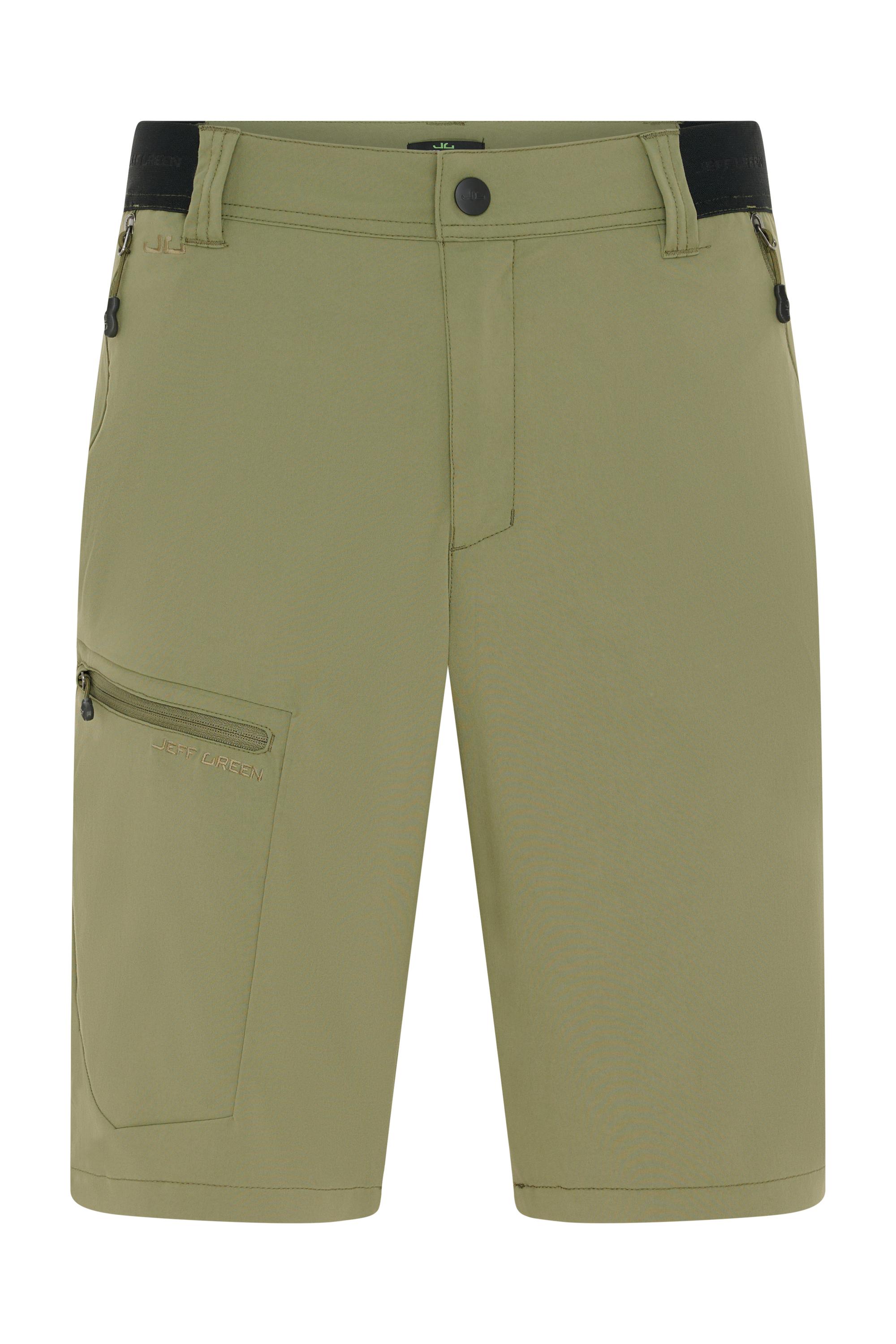 Jeff Green Trekking Shorts "Amaru" - Deine perfekten Begleiter für Outdoor-Abenteuer! Sportliche Freizeitshorts für alle Aktivitäten im Freien Die Jeff Green Trekking Shorts "Amaru" sind deine idealen Shorts für jedes Outdoor-Abenteuer. Egal ob Wandern, Trekking oder Camping, diese Shorts bieten dir den Komfort und die Funktionalität, die du benötigst, um dich frei zu bewegen und die Natur zu genießen. Elastisch, hochgradig atmungsaktiv und schnell trocknend Mit ihrer elastischen Konstruktion passen sich die Shorts perfekt deinem Körper an und bieten dir maximale Bewegungsfreiheit. Sie sind hochgradig atmungsaktiv und schnell trocknend, damit du auch bei intensiven Aktivitäten angenehm kühl und trocken bleibst. Elastischer Einsatz im seitlichen Hosenbund für eine individuelle Passform Der elastische Einsatz im seitlichen Hosenbund sorgt für eine individuelle Passform und einen bequemen Sitz, damit du dich uneingeschränkt bewegen kannst, ohne dass die Shorts verrutschen. Praktische Taschen mit YKK-Reißverschlüssen Die Shorts verfügen über zwei Reißverschlusstaschen vorne, eine Reißverschlusstasche auf dem linken Bein und eine Gesäßtasche mit Reißverschluss, die ausreichend Platz für deine wichtigen Utensilien bieten. Die YKK-Reißverschlüsse garantieren eine zuverlässige Funktionalität. Fein gesticktes Jeff Green Logo für einen Hauch von Stil Ein fein gesticktes Jeff Green Logo oberhalb der rechten Cargotasche verleiht den Shorts einen Hauch von Stil und Understatement. Material und Gewicht Hergestellt aus 96% Nylon und 4% Elastan wiegen die Shorts nur 200 Gramm (Gr. 48/S), was sie zu einem leichten und dennoch strapazierfähigen Begleiter für deine Outdoor-Abenteuer macht. Fazit: Die Jeff Green Trekking Shorts "Amaru" bieten dir Komfort, Funktionalität und Stil für deine Outdoor-Aktivitäten. Hol sie dir jetzt und erlebe unvergessliche Abenteuer in der Natur!