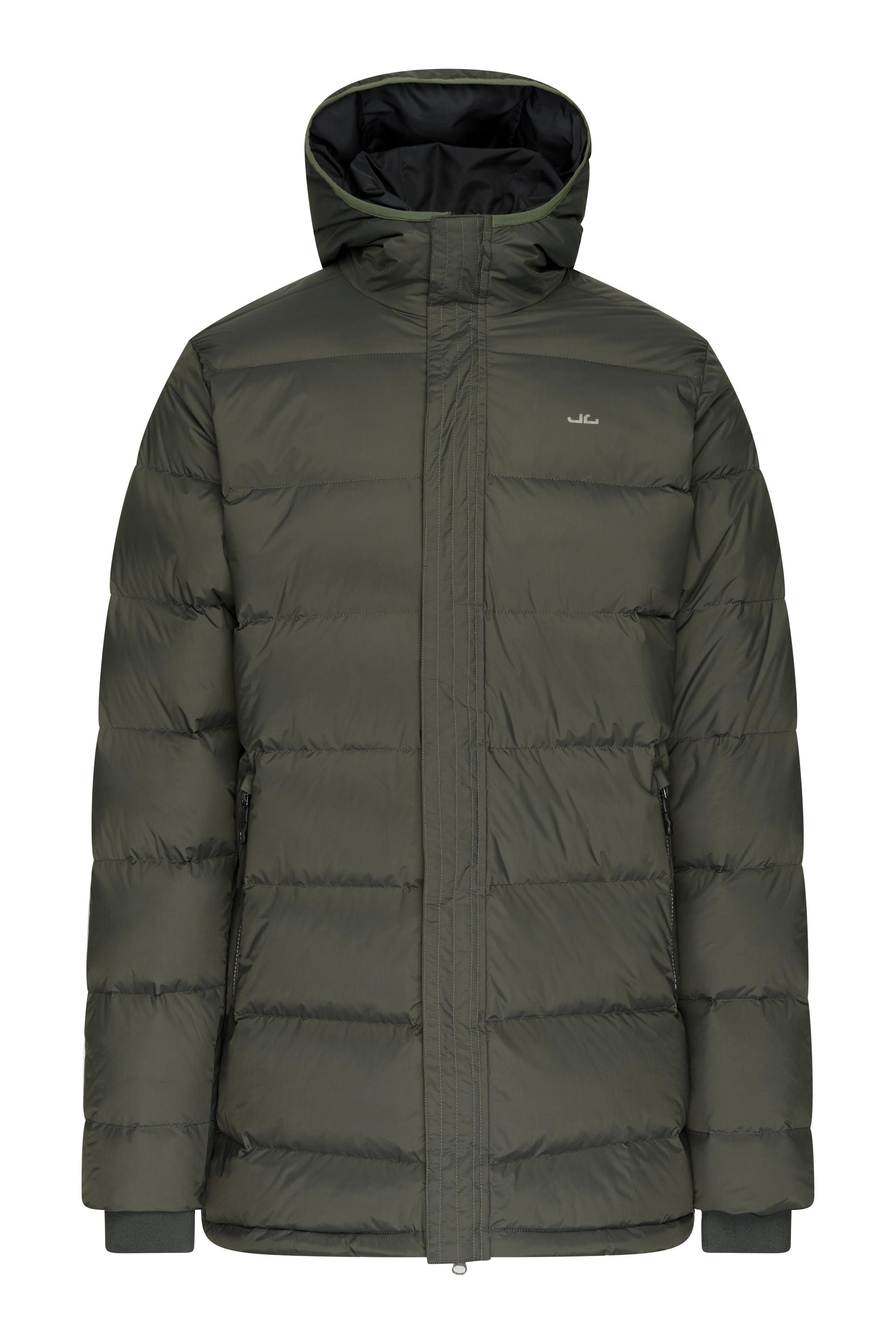 Der Herren Daunenparka Bray von Jeff Green vereint außergewöhnliche Leistung mit zeitlosem Design. Perfekt für Männer, die sich von der Masse abheben und den höchsten Tragekomfort genießen möchten. Hier sind die Gründe, warum der Bray Daunenparka Ihre nächste Wahl für Wärme und Stil sein sollte: Zuverlässiger Schutz: Der dauerhaft wasserabweisende und winddichte Außenstoff schützt Sie vor den Elementen, ohne Kompromisse bei Atmungsaktivität und Bewegungsfreiheit einzugehen. Komfortabler Kragen: Der hochschließende Kragen bietet nicht nur zusätzlichen Schutz vor Kälte und Wind, sondern verleiht dem Parka auch eine elegante Note. Hochwertiger Reißverschluss: Der YKK Vislon 2-Wege-Reißverschluss mit Untertritt und Kinnschutz sorgt für zusätzlichen Schutz vor Kälte und Wind, während die durchgehende Patte mit Klett die Isolation maximiert. Praktische Taschen: Zwei Reißverschlusstaschen bieten ausreichend Platz für Ihre Essentials, während die Innentasche mit Reißverschluss ideal für Wertsachen ist. Wärme am Ärmel: Die Ärmelbündchen mit innenliegender Stulpe halten kalte Luft ab und verleihen dem Parka eine moderne Note. Dezenter Markenlogo: Der dezente Logodruck verleiht dem Parka eine subtile Note von Qualität und Eleganz. Hergestellt aus hochwertigem Außengewebe aus 100% Polyamid, Futter aus 100% Polyester und einer Isolierung aus 80% Daunen und 20% Federn (kein Lebendrupf) mit einer Füllkraft von 750 CUIN bietet der Jeff Green Herren Daunenparka Bray optimale Wärmeleistung und Qualität. Mit einem Gewicht von nur 650 g (Gr. 48) ist er leicht und dennoch stark genug, um Sie warm zu halten. Erobern Sie die Kälte mit Stil und Komfort – mit dem Herren Daunenparka Bray von Jeff Green. Perfekt für Outdoor-Abenteuer und stilvolle Stadterkundungen. Bitte beachten Sie, dass der Parka nichttextile Teile tierischen Ursprungs enthält.