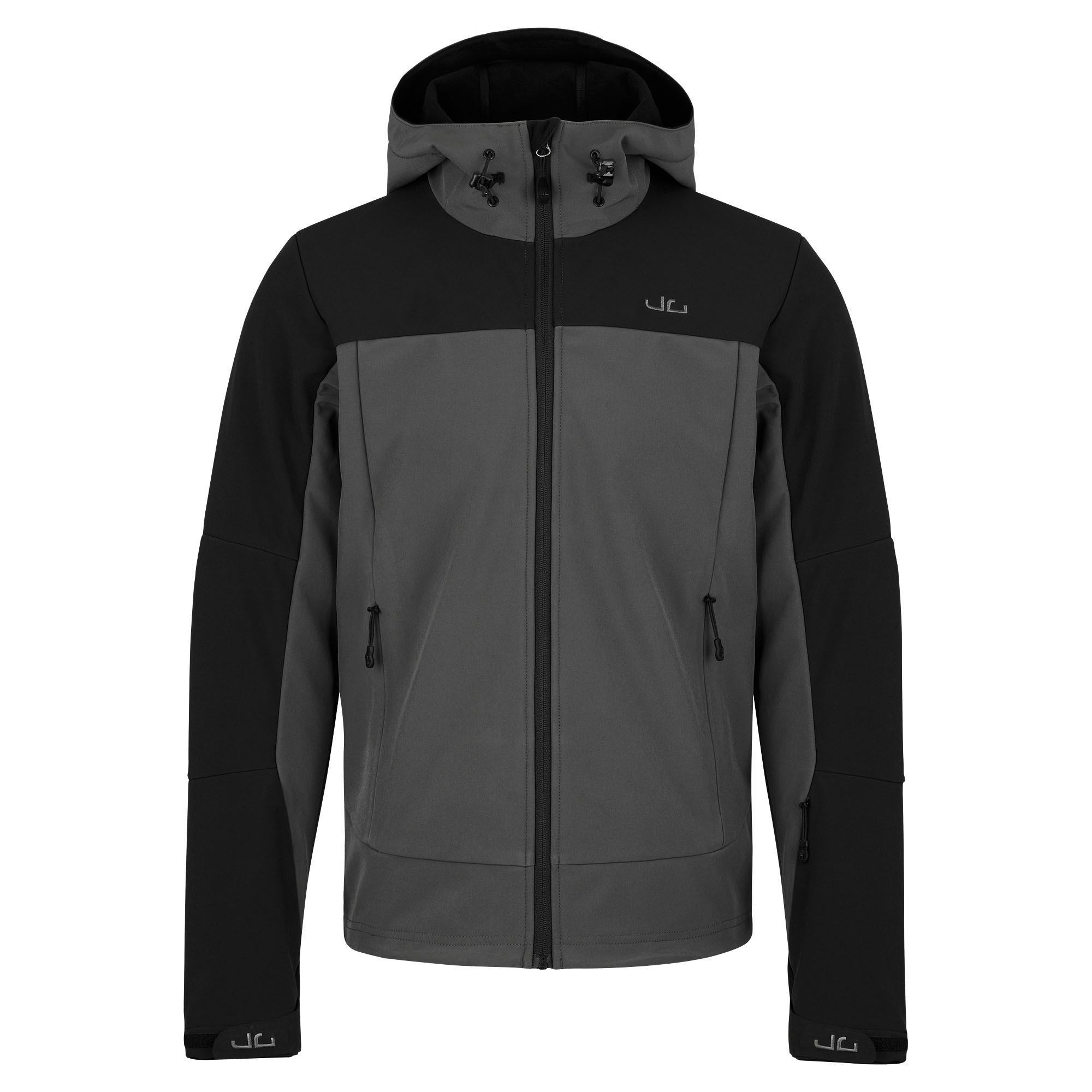 Beste Bekleidungstechnik leger verpackt. Eine Herren Outdoor Softshell-Jacke vom Feinsten. 3-lagiger Materialaufbau mit bi-elastischem Oberstoff, Membran und Fleece-Innenseite. Das Material ist wasserdicht, winddicht und atmungsaktiv. Die Nähte sind durch innenliegende Verstärkungen nahezu wasserdicht. Verdeckte Reißverschlusstaschen sowie ein lässiger Hoodie Look mit der 2 Farben-Optik. Der Rücken ist ca. 4cm länger als die Frontpartie. Dezente Jeff Green Stickerei auf der Brust und im unteren Rückenbereich runden das Gesamtbild ab. Du wirst die pflegeleichte Jeff Green Jacke Calais zum Klettern und Wandern, aber auch zum Biken, Golfen, Segeln und im täglichen Einsatz lieben. Der elastische Oberstoff ermöglicht Dir eine enorme Bewegungsfreiheit, die gefleecte Innenseite bewirkt einen schnellen Feuchtigkeitstransport und gewährleistet einen hohen Kuschelfaktor für eine derart technikbetonte Outdoorjacke. Bitte beachte, dass eine Softshell-Jacke keine vollwertige Regenjacke ist; auch wenn das Obermaterial wasserdicht ist, können bei diesem Produkttyp die Nähte nicht wasserdicht verschweißt werden. Alle Nähte werden bei uns innenliegend mit Verstärkungsband gedoppelt, was für guten Wetterschutz sorgt, aber bei starkem Regen an seine Grenzen stößt. Produktmermale: - Winddichter und wasserabweisender Oberstoff - Bi-elastischer Oberstoff für perfekten Tragekomfort und Beweglichkeit - Hoch schließender Kragen aus weichem, gebürsteten Fleece - Reißverschluss mit Untertritt und Kinnschutz - Armabschluss mit Klett verstellbar - Alle Nähte innen mit Verstärkungsband gedoppelt - Verstellbarer Bund - Einstellbare Kapuze mit reflektierendem Aufdruck - Drei Außentaschen, davon eine mit innenliegender Multimedia-Kabelführung