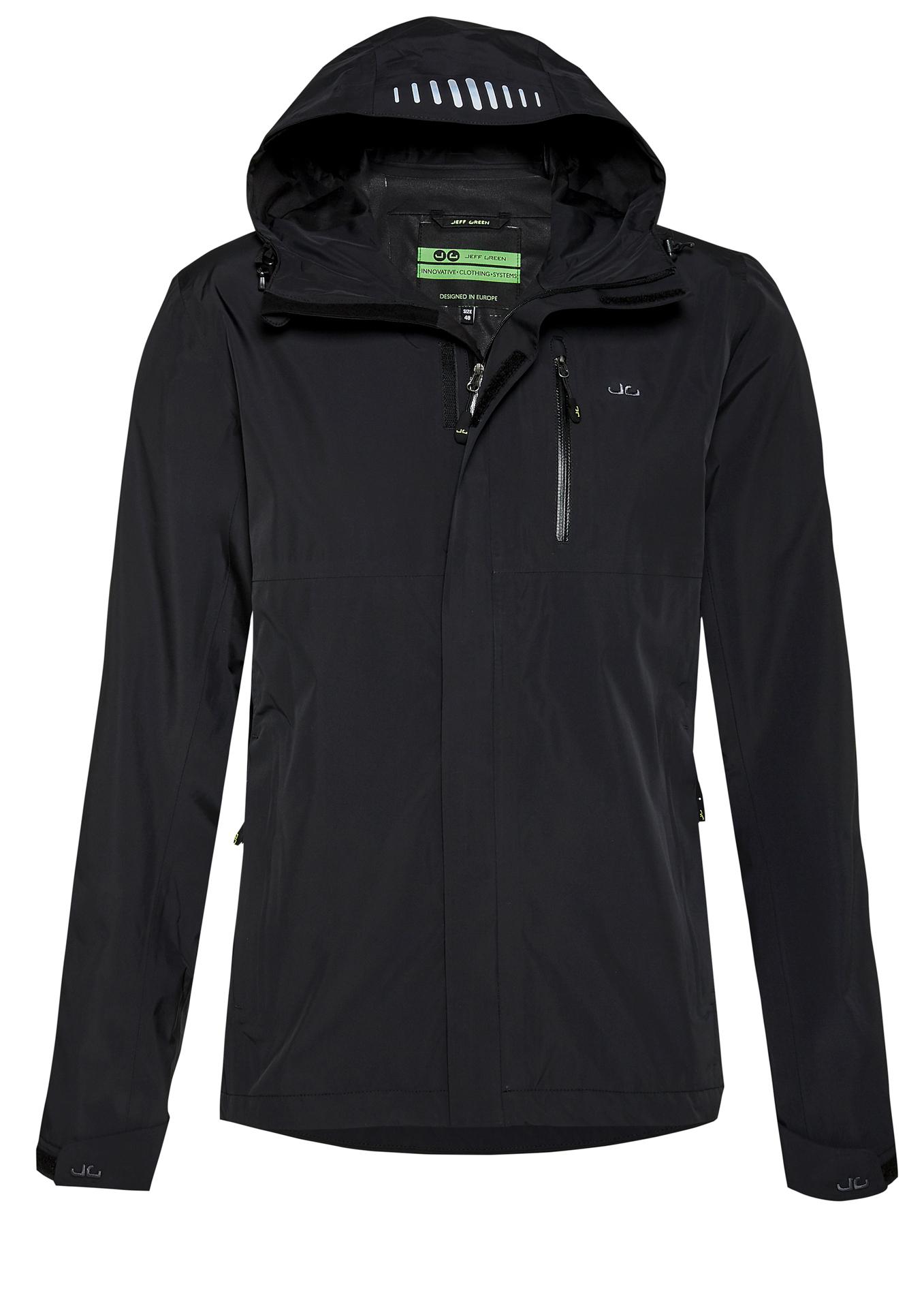 Superleichtes Hightech-Material. Die Herren-Regenjacke "Jan" aus 3 Lagen Laminat ist mit gerade einmal 250 g (Größe 50) ein echtes Leichtgewicht. Das macht sie neben ihrem kleinen Packmaß perfekt für alle Unternehmungen, bei denen zuverlässiger Wetterschutz nicht viel Platz und Gewicht beanspruchen darf, z.B. bei ausgiebigen Rucksack- und Fahrradtouren. Dank der eingearbeiteten Membran und der komplett verschweißten Nähte ist die Herren-Regenjacke "Jan" zu 100% wasser- und winddicht. Die Kapuze lässt sich so variabel einstellen, dass sie jede Bewegung mitmacht, ohne das Sichtfeld zu verdecken. Der untere Bund ist, ebenso wie die Ärmelbündchen, regulierbar, die Rückenpartie ist 8 cm länger gearbeitet. Das Material ist atmungsaktiv, zusätzlich sorgen seitliche mit Reißverschluss einstellbare Belüftungsschlitze für ein schnell regulierbares und angenehmes Trageklima. Produktmerkmale:: - Hochwertige wasserdichte YKK Reißverschlüsse - Vollständig verschweißte Nähte - 15.000 mm Wassersäule - Winddicht - Atmungsaktivität 10000 g/m²/24h - Drei wasserdichte RV-Außentaschen - Unterarmbelüftung - Volleinstellbare Kapuze - 8 cm längere Rückenpartie