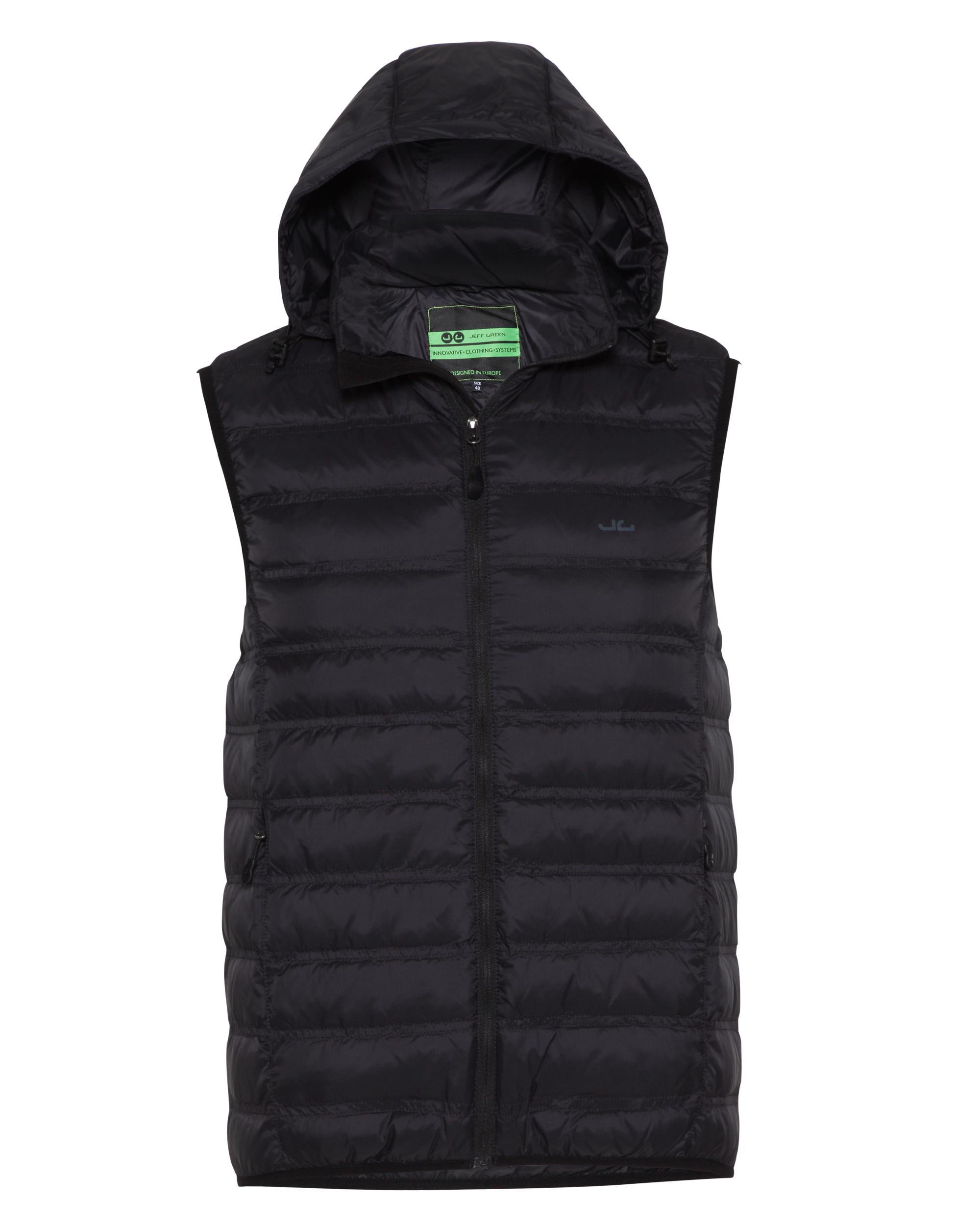 Erlebe ultimativen Komfort und Stil mit der Herren Daunenweste John von Jeff Green. Diese Weste vereint Funktionalität, Leichtigkeit und zeitloses Design in einem Kleidungsstück. Hier sind die Gründe, warum die John Daunenweste ein unverzichtbares Element deiner Garderobe wird Wasserabweisender Schutz: Die John Daunenweste ist wasserabweisend, was bedeutet, dass du bei leichtem Regen oder feuchtem Wetter optimal geschützt bleibst. Leicht und Kompakt: Das leichte Material und das kleine Packmaß machen die Weste zum perfekten Begleiter für unterwegs. Egal ob du sie in deinem Rucksack oder der inkludierten Transporttasche verstaut, sie wird nie zur Last. Hervorragende Daunendichte: Die Daunenweste John ist daunendicht konstruiert, um die Isolationseffizienz zu maximieren und dich angenehm warm zu halten. Anpassbare Vielseitigkeit: Die über einen Reißverschluss abnehmbare Kapuze kann nach Bedarf angepasst werden, um deine Präferenzen und den Wetterumschwüngen gerecht zu werden. Bequeme Passform: Das Elastikband an Saum und Armloch sorgt nicht nur für eine bequeme Passform, sondern verhindert auch das Eindringen von kalter Luft. Praktische Taschen: Die zwei RV-Außentaschen bieten ausreichend Stauraum für deine Essentials, während die Innentasche mit Reißverschluss ideal für Wertsachen ist. Dezent und Reflektierend: Der dezente, reflektierende Logodruck verleiht der Weste einen Hauch von Eleganz und verbessert die Sichtbarkeit bei schlechten Lichtverhältnissen. Inklusive Transportbeutel: Die Weste wird mit einem praktischen Transportbeutel in Westenfarbe geliefert, der das Verstauen erleichtert, und zusätzlich Platz spart. Mit einem Außengewebe aus 100% Polyamid und einer Füllung aus 80% Daunen und 20% Federn (kein Lebendrupf) mit einer Füllkraft von 750 cuin bietet die Jeff Green Herren Daunenweste John herausragende Qualität und Wärmeleistung. Mit einem Gewicht von nur 300 Gramm (Gr. 52) ist sie federleicht und dennoch stark genug, um dich warm zu halten. Die Herren Daunenweste John von Jeff Green ist die perfekte Ergänzung für jeden Kleiderschrank, sei es für Outdoor-Abenteuer oder stilvolle Stadtausflüge. Enthält nichttextile Teile tierischen Ursprungs.