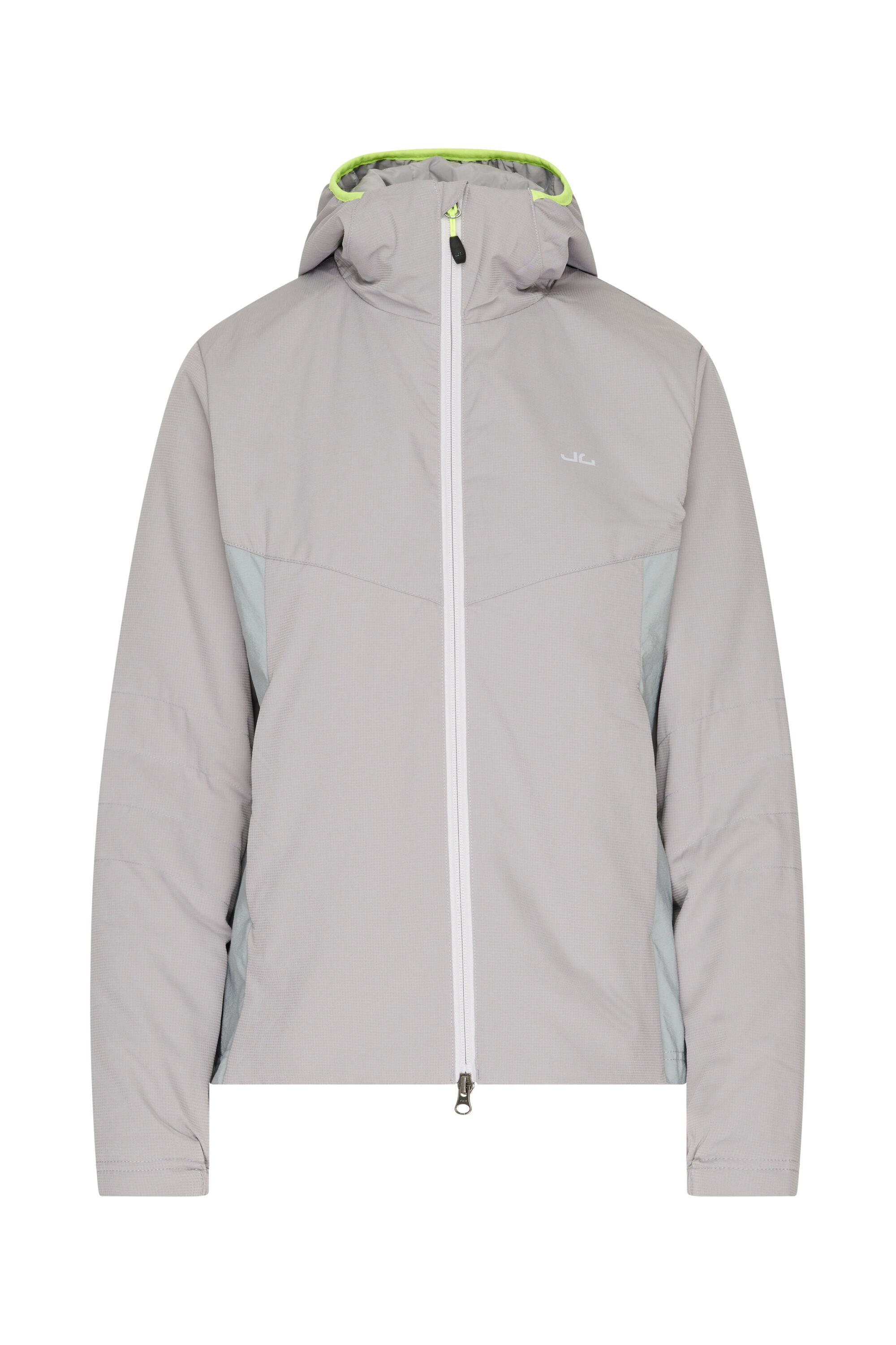 Die Jeff Green Damen Hybridjacke Laina ist die perfekte Wahl für Frauen, die auf der Suche nach einer vielseitigen Übergangsjacke sind. Diese Jacke vereint Stil, Funktionalität und Komfort auf beeindruckende Weise und ist der ideale Begleiter für unterschiedlichste Anlässe und Wetterbedingungen. Vielfältig einsetzbare Übergangsjacke Die Jeff Green Damen Hybridjacke Laina ist eine wahre Allzweckwaffe. Sie eignet sich hervorragend für Wanderungen, Spaziergänge in der Stadt oder den täglichen Gebrauch. Diese Jacke ist leicht, bequem und vielseitig einsetzbar. Vislon YKK-2-Wege-Frontreißverschluss Der hochwertige Vislon YKK-2-Wege-Frontreißverschluss ermöglicht eine einfache Anpassung der Belüftung und bietet Flexibilität bei wechselnden Wetterbedingungen. Sie behalten die Kontrolle über Ihr Tragegefühl. Praktische Taschen und Innentasche mit Reißverschluss Mit zwei Reißverschluss-Seitentaschen und einer Innentasche mit Reißverschluss bietet diese Jacke ausreichend Stauraum für Ihre persönlichen Gegenstände. Schlüssel, Handy und andere Kleinigkeiten sind sicher verstaut. Leichte Kunstfaserisolierung und elastische Einsätze im Seitenbereich Die leichte Kunstfaserisolierung hält Sie warm, ohne Sie in Ihrer Bewegungsfreiheit einzuschränken. Die elastischen Einsätze im Seitenbereich sorgen für eine optimale Passform und zusätzliche Bewegungsfreiheit. Hoch schließender Kragen mit Kinnschutz und Kapuze mit Elastiksaum Der hoch schließende Kragen mit Kinnschutz schützt vor Wind und Kälte und verhindert unangenehmes Reiben. Die Kapuze mit Elastiksaum bietet zusätzlichen Schutz und ist individuell anpassbar. Atmungsaktiv und sehr elastisch Die Jeff Green Damen Hybridjacke Laina ist hoch atmungsaktiv und sehr elastisch, was ein angenehmes Tragegefühl und optimale Bewegungsfreiheit gewährleistet. Solo bei trockenen kühlen Temperaturen oder als Midlayer Tragen Sie diese Jacke solo bei trockenen, kühlen Temperaturen oder nutzen Sie sie als Midlayer unter einer anderen Jacke, wenn es besonders kalt ist. Diese Jacke ist äußerst vielseitig und passt sich Ihren Bedürfnissen an. Hochwertige Materialien Hergestellt aus 90% Polyamid und 10% Elastan für das Außengewebe und 100% Polyester für die Füllung, bietet die Jeff Green Damen Hybridjacke Laina höchsten Komfort bei einem Gewicht von nur 400 Gramm (Größe 38). Die Jeff Green Damen Hybridjacke Laina ist die ideale Wahl für Frauen, die Stil und Funktionalität gleichermaßen schätzen. Bestellen Sie noch heute und erleben Sie die perfekte Kombination aus Eleganz und Leistung!