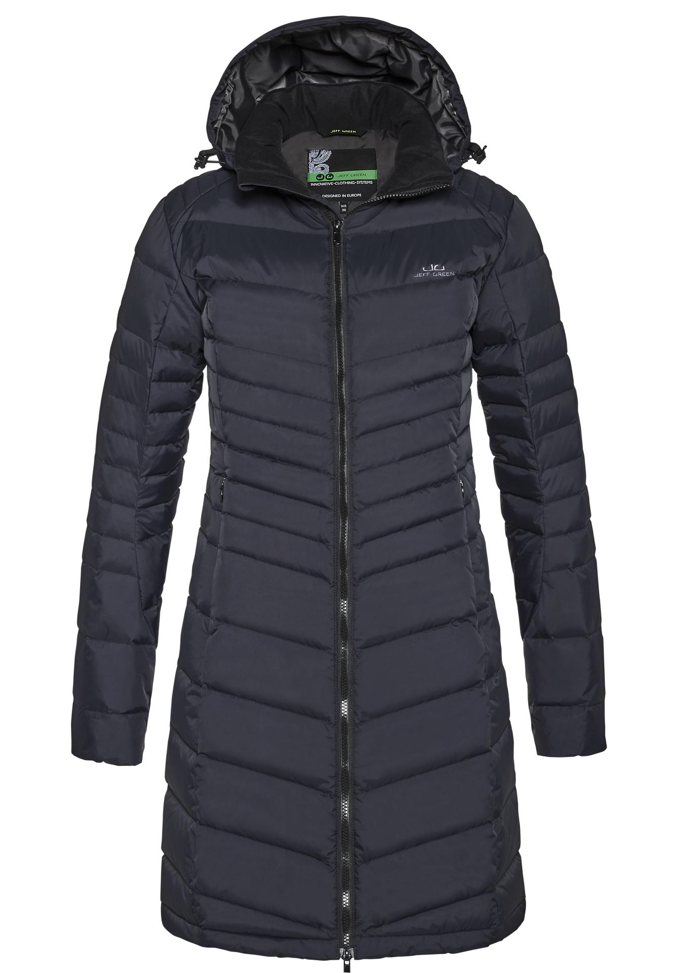 Bei unserem sportlich modernen Daunenmantel „Lina“ hatten wir den Anspruch, höchste Outdooranforderungen in die City zu bringen. Was das bedeutet ist ganz klar: Beste Isolationseigenschaften bei geringem Gewicht in einem stylischen Gewand. Schon beim ersten Kontakt mit dem Daunenmantel „Lina“ merkt man, um was für eine Qualität es sich hier handelt. Verarbeitet sind hier Daunen in einer Mischung von 80% Daunen zu 20% Federn, mit einer sehr hohen Bauschkraft von 750 CUIN. Wenn dir der Mantel doch mal zu warm wird, kannst du ihn einfach mit dem 2-Wege Reißverschluss etwas luftiger machen. Natürlich haben wir dabei die hochwertigen YKK Reißverschlüsse und Zipper-Puller verbaut. Der Daunenmantel „Lina“ ist tailliert geschnitten und in etwa knielang. Verstellbar ist, auch mit nur einem Zug, die abnehmbare Kapuze. Eine innenliegende Handytasche mit Multimedia-Kabelführung und Reißverschluss rundet das Paket ab.
