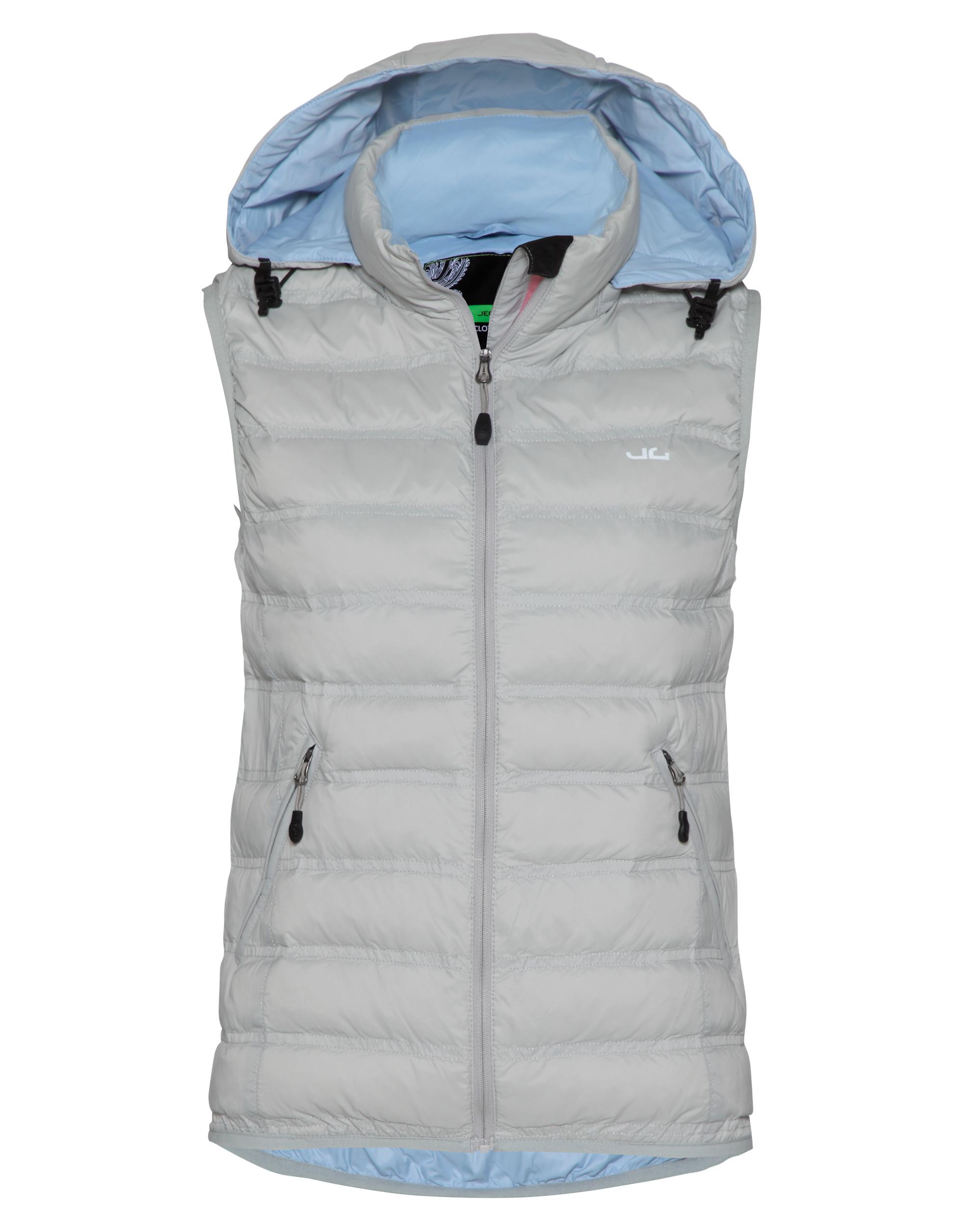 Jeff Green ist ein Unternehmen aus Norddeutschland, das hochwertige funktionale Outdoor Bekleidung herstellt. Entwicklung & Design in Deutschland! Federleicht, superwarm und immer dabei! Unsere Daunenweste Madlin wird Dich mit ihrer hochwertigen zertifizierten Gänsedaune, dem geringen Packmaß (Transportbeutel inklusive) und dem federleichten Gewicht von gerade mal 300 Gramm (Gr. 40) begeistern. Wir verwenden eine besonders hochwertige Mischung aus 80% Daunen, die nicht per Lebendrupf gewonnen werden und 20% Federn mit einer Bauschkraft von 750 cuin. Der wasserabweisende Oberstoff schützt Dich bei leichten Regenschauern und hält gleichzeitig die Daunen im Inneren trocken - die Daunen verklumpen nicht und die hervorragende natürliche Isolationseigenschaft der Daunen bleibt erhalten. Mit einer abnehmbaren und über Quickstopper einstellbaren Kapuze sowie einer RV-Innentasche bietet unsere Daunenweste Madlin alles, was Du Dir von einer hochwertigen Daunenweste wünschst. Produktmerkmale:: - Hochwertige 80/20 Mischung, 750 cuin - 2 Reißverschluss-Außentaschen - Innen eine Reißverschluss-Tasche mit Multimedia-Kabelführung - Elastikband an Saum und Armloch - Abnehmbare Kapuze mit Quickstopper - Wasserabweisend - Leichtgewichtiges Material - Daunendicht - Inklusive Transportbeutel für besonders platzsparende Verstauung - Enthält nichttextile Teile tierischen Ursprungs.