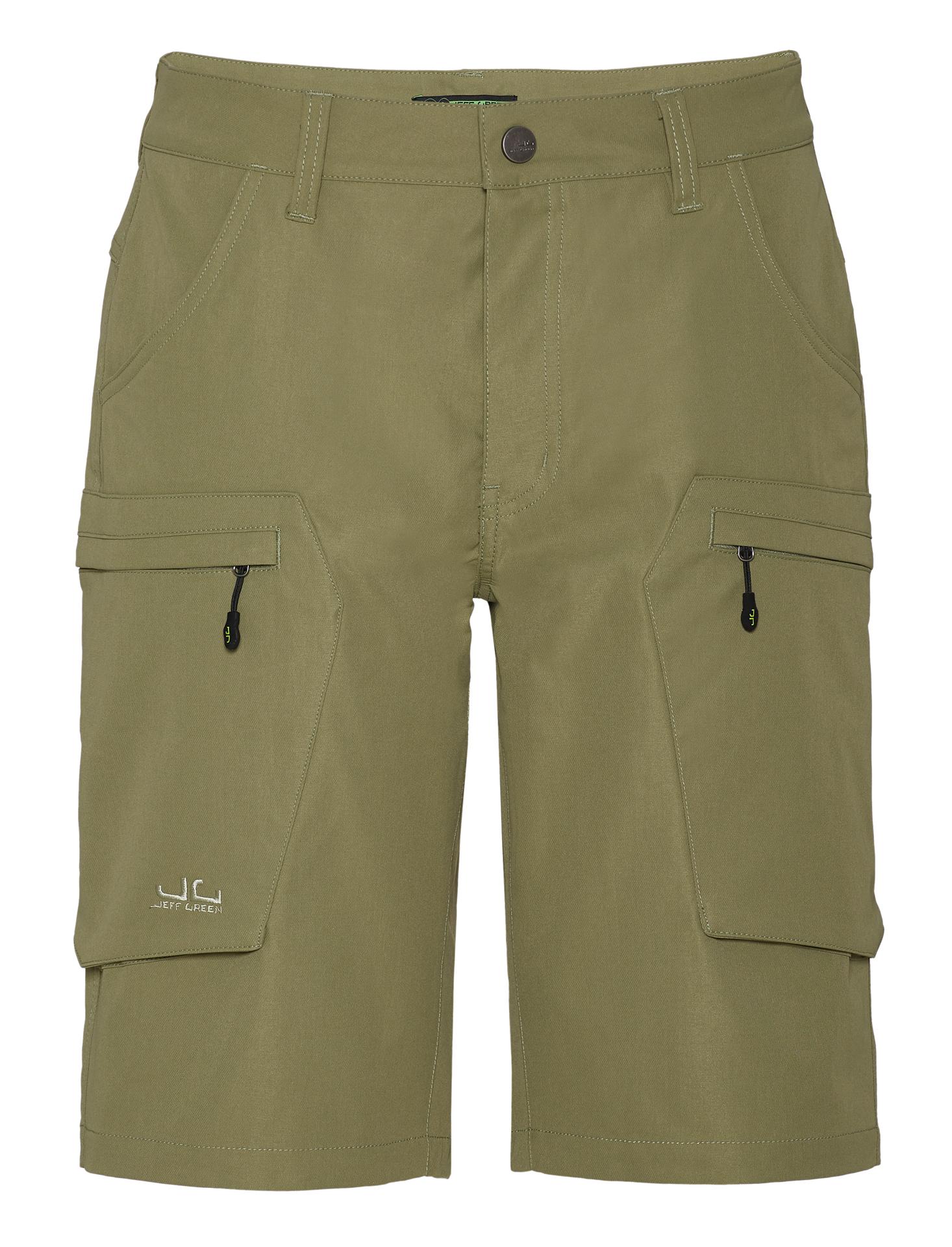 - Robuster, langlebiger Oberstoff der alle Abenteuer mitmacht - Vorne zwei Außentaschen I Hinten eine Paspeltasche mit Reißverschluss I Zwei geräumige Cargotaschen mit Reißverschluss - YKK-Reißverschlüsse I Druckknopf mit lasergearbeitetem Jeff Green Logo - Fein gesticktes Jeff Green Logo auf der rechten Cargotasche - Material: 54% Baumwolle, 46% Polyester (300 g Gr. 52)