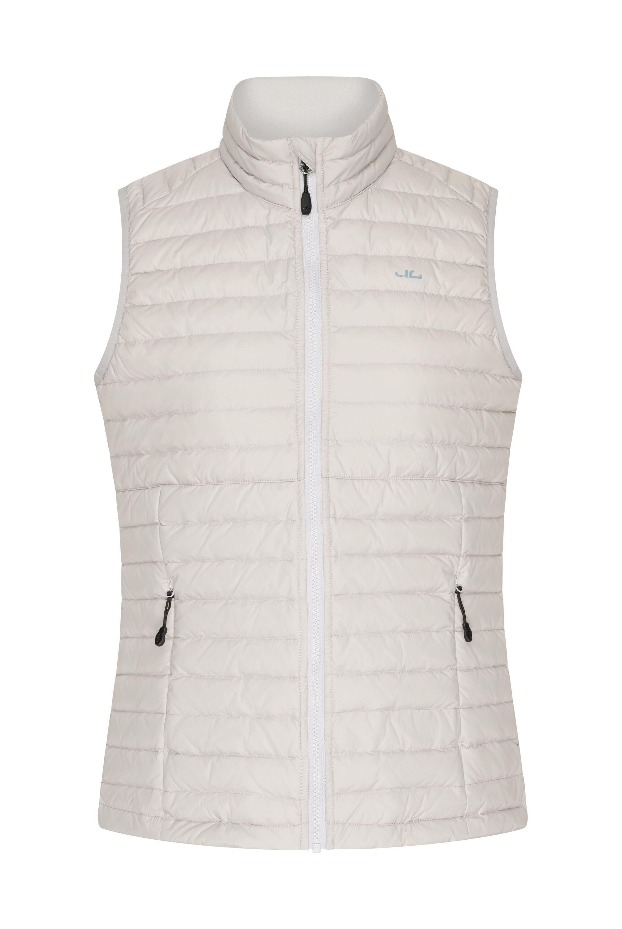 Die Daunenweste Venia kombiniert mühelose Eleganz mit herausragender Funktionalität, um Ihnen ein vielseitiges Kleidungsstück zu bieten, das Sie überall hin begleitet. Schutz vor Wind und Wetter - Immer und überall Die Venia Daunenweste überzeugt nicht nur durch ihre Leichtigkeit, sondern auch durch ihre wasserabweisenden und nahezu winddichte Eigenschaften. Ganz gleich, ob Sie in der Stadt unterwegs sind oder die Natur erkunden - diese Weste hält Sie trocken und geschützt. Ihr geringes Gewicht und das kleine Packmaß machen sie zum perfekten Begleiter für Abenteuer unterwegs. Komfort und Schutz in einem Die Daunenfüllung in der Venia Weste bleibt dank ihrer daunendichten Verarbeitung gleichmäßig verteilt und sorgt so für optimale Isolierung. Der hochschließende Kragen ist mit gebürstetem Fleece ausgekleidet, was zusätzliche Wärme und Komfort bietet. Das Elastikband am Armloch gewährleistet eine angenehme Passform und verhindert das Eindringen von kalter Luft. Praktische Details für Ihren Alltag Die zwei versteckten Reißverschlusstaschen bieten Stauraum für kleine Essentials und wärmen gleichzeitig Ihre Hände. Zwei Innentaschen bieten zusätzlichen Platz, während der YKK-Vislon Reißverschluss mit Untertritt und Kinnschutz den Komfort erhöht und Reibung verhindert. Individuelle Anpassung und höchste Qualität Der über Quickstopper einstellbare Bund ermöglicht eine individuelle Anpassung der Weste, um optimal vor Kälte geschützt zu sein. Der dezente Logodruck unterstreicht die hochwertige Qualität dieser Weste. Nachhaltigkeit und Tierwohl im Fokus Die Weste Venia besteht aus hochwertigem Außengewebe aus 100% Nylon und einer Füllung aus 80% Daunen und 20% Federn mit einer Bauschkraft von 750 cuin. Die Füllung stammt aus ethisch vertretbaren Quellen und ist garantiert frei von Lebendrupf. Mit einem Gewicht von nur 300 Gramm (Größe 40) ist die Weste leicht und dennoch hervorragend isolierend. Die Daunenweste Venia bietet Ihnen den perfekten Begleiter für unbeschwerte Eleganz und zuverlässigen Schutz. Ob bei Outdoor-Aktivitäten oder im Alltag, diese Weste hält Sie warm, geschützt und stilvoll. Bitte beachten Sie, dass die Weste nichttextile Teile tierischen Ursprungs enthält.