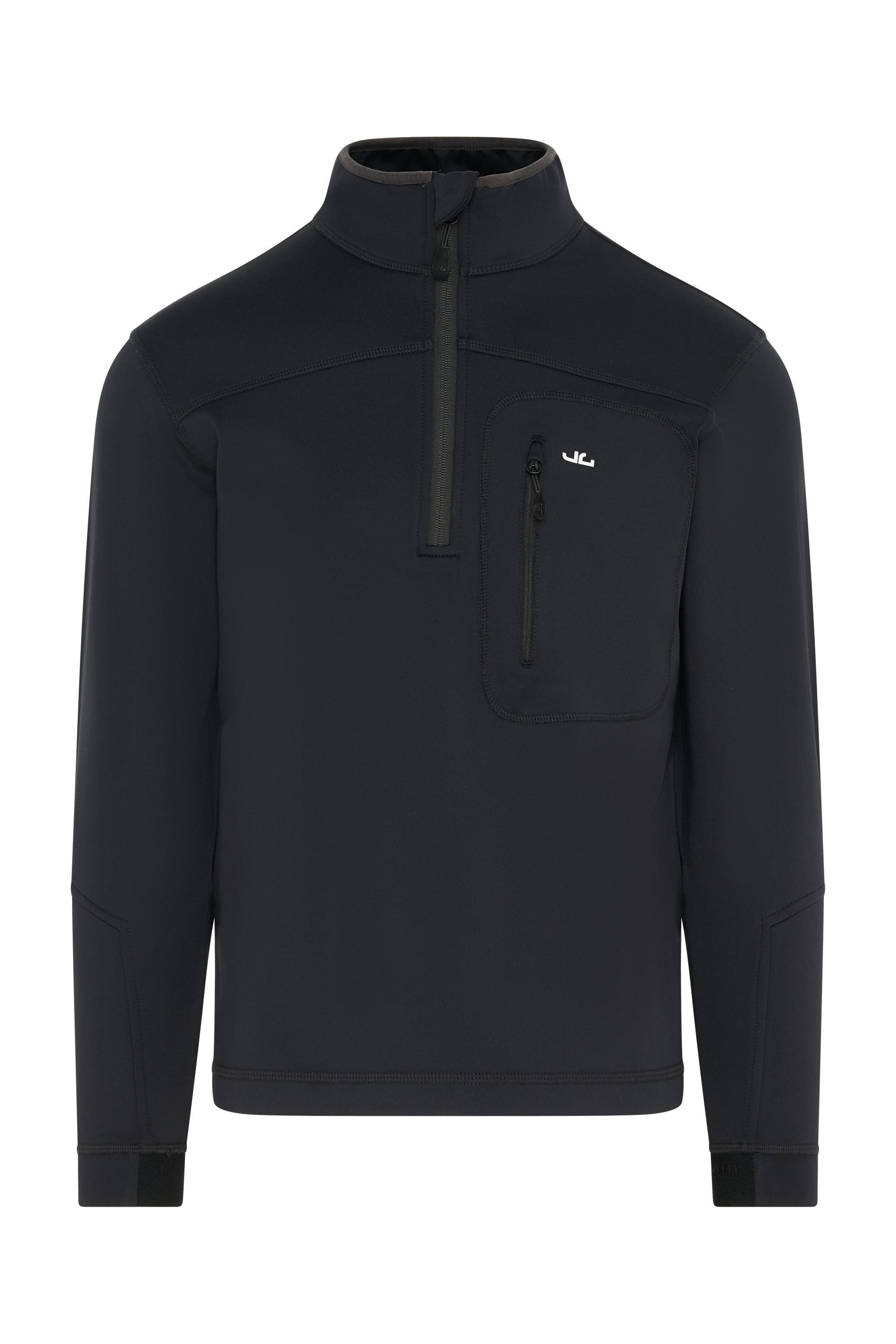 Jeff Green Thermoshell Pullover "William" - Dein perfekter Begleiter für jedes Abenteuer! Atmungsaktiver und bi-elastischer Thermoshell Pullover Der Jeff Green Thermoshell Pullover "William" ist nicht nur atmungsaktiv, sondern auch bi-elastisch, was dir uneingeschränkte Bewegungsfreiheit und höchsten Komfort bei jeder Aktivität bietet. Das 1/4 Zip-Design ermöglicht eine individuelle Anpassung der Belüftung. Nachhaltiges Material aus 100% recyceltem Polyester Mit einem Polyesteranteil aus 100% recyceltem Polyester trägst du nicht nur zu einem umweltfreundlicheren Lebensstil bei, sondern genießt auch die Vorteile eines hochwertigen und strapazierfähigen Materials. Praktische RV-Brusttasche und Elastikband am Ärmelabschluss Die RV-Brusttasche bietet Platz für wichtige Utensilien und sorgt dafür, dass du sie immer griffbereit hast. Das Elastikband am Ärmelabschluss gewährleistet eine individuelle Passform und hält die Ärmel sicher an ihrem Platz. Hoch schließender Kragen mit Untertritt und Kinnschutz Der hoch schließende Kragen mit Untertritt und Kinnschutz bietet zusätzlichen Schutz vor Wind und Kälte, damit du auch bei widrigen Wetterbedingungen warm und geschützt bleibst. Innenseite aus gebürstetem Fleece für zusätzliche Wärme Die Innenseite des Pullovers ist aus gebürstetem Fleece gefertigt, das für eine angenehme Wärme und ein weiches Tragegefühl sorgt, damit du dich auch an kühleren Tagen rundum wohl fühlst. Reflektierender JG Logodruck für erhöhte Sichtbarkeit Der reflektierende JG Logodruck sorgt für erhöhte Sichtbarkeit bei schlechten Lichtverhältnissen, was deine Sicherheit beim Outdoor-Sport oder auf dem Weg zur Arbeit verbessert. Pflegeleicht, schnell trocknend und knitterfrei Der Pullover ist pflegeleicht, schnell trocknend und knitterfrei, sodass du ihn nach dem Waschen schnell wieder einsatzbereit hast und stets gut aussiehst. Leichtes Gewicht für angenehmen Tragekomfort Mit einem Gewicht von nur ca. 350g (Gr. 48/S) ist der Pullover leicht und angenehm zu tragen, ideal für lange Tage unterwegs. Fazit: Der Jeff Green Microfleecepullover "William" vereint Funktionalität, Nachhaltigkeit und Komfort in einem Produkt. Hol ihn dir jetzt und erlebe unvergessliche Abenteuer, egal bei welchem Wetter!
