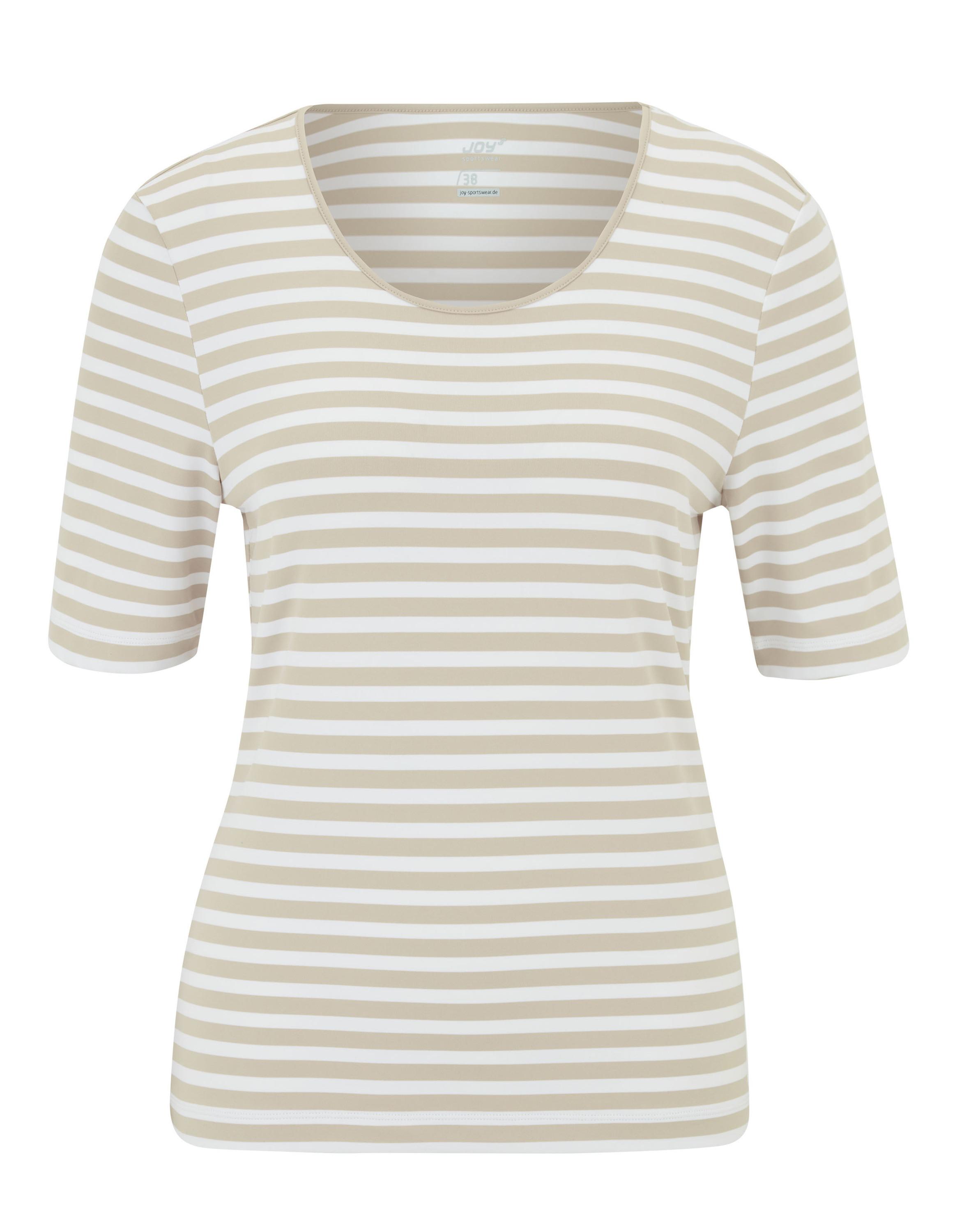 Das T-Shirt ALLISON von JOY sportswear. Ob für zu Hause, im Garten oder auf der Straße, das Streifen-Shirt lässt sich passend kombinieren. Es hat einen etwas tieferen Rundhalsausschnitt und einen körpernahen Schnitt. Der verlängerte Kurzarm sieht nicht nur gut aus, er ist auch perfekt, wenn das Wetter mal frischer wird. Das weiche Baumwollmaterial verfügt über natürlich klimaregulierende Eigenschaften.