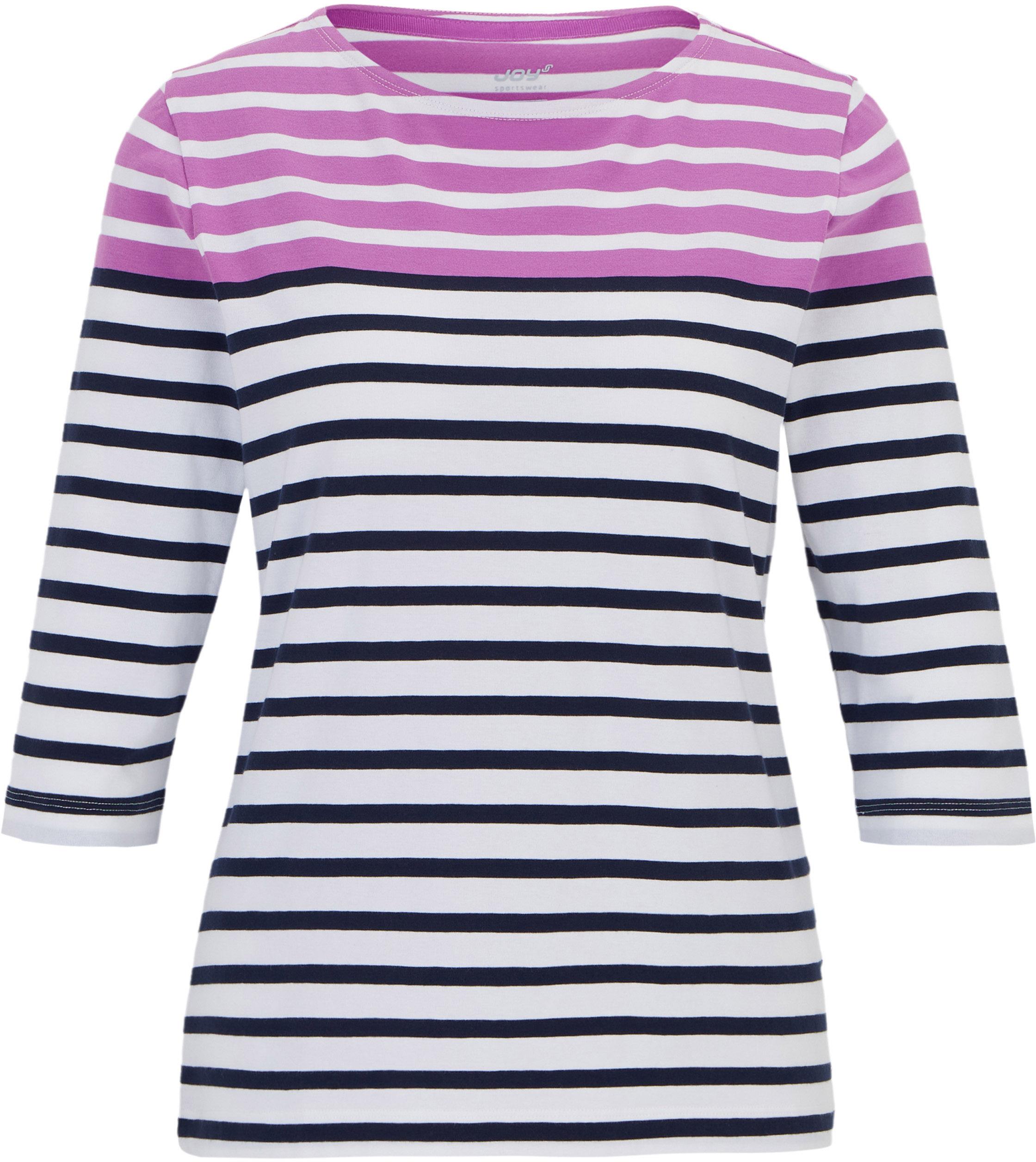 Gestreiftes Shirt mit Rundhalsausschnitt und 3/4-Ärmeln; weiches Nackenband; körpernaher Schnitt; Logoprint; Material 95% Baumwolle, 5% Elastan.