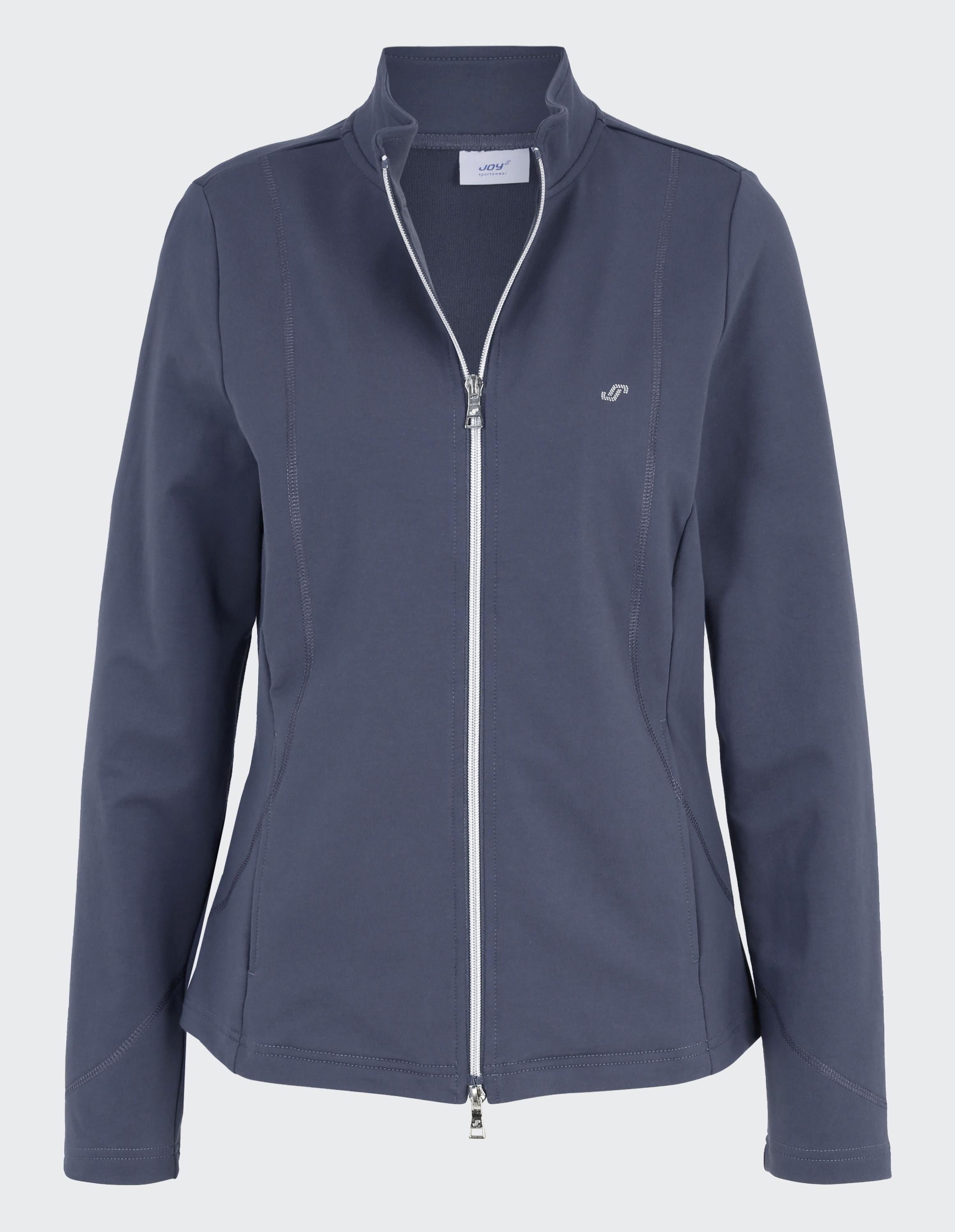 Damen-Sweatjacke DORIT: Funktionalität neu interpretiert Suchen Sie Sportbekleidung, die lässig ist und dennoch Ihr Gespür für Mode unterstreicht? Dann sind Sie bei der Damen-Sweatjacke DORIT an der richtigen Adresse! Was dieses Langarm-Modell von anderen unterscheidet, sind feminine Details, welche Ihre Weiblichkeit unterstreichen. Eine vorteilhafte Nahtführung sowie dekorative Schmucknähte sind echte Hingucker. Der taillierte Schnitt schmeichelt Ihrer Figur. Optisches Highlight ist das Signet von JOY sportswear aus silbernen Nieten. Diese verleihen der Sportjacke einen dezenten Hauch Glitzer. DORIT überzeugt zusätzlich mit ihren hochwertigen Materialeigenschaften. Die funktionale Mischung aus Baumwolle, Polyester und Elasthan ist griffig und liegt dennoch leicht auf der Haut. Zudem ist der Stretch-Stoff unglaublich elastisch. So können Sie beim Aufwärmen optimal in die Dehnung gehen. Auch auf funktionaler Ebene punktet die Sweatjacke DORIT mit praktischen Features: In den zwei Eingrifftaschen haben kleine Wertgegenstände wie Schlüssel oder Gym-Karte Platz. Regeln Sie mit dem Zwei-Wege-Reißverschluss ganz unkompliziert Ihr Körperklima. Der stabile Stehkragen schützt Sie am Hals vor Luftzügen. All das macht DORIT zu einer strapazierfähigen Übergans- und Freizeitjacke, die Sie bei jeder Witterung warmhält. Suchen Sie aus unserer Farb- und Größenpalette eine Zipperjacke aus und bestellen Sie DORIT ganz bequem bei uns.
