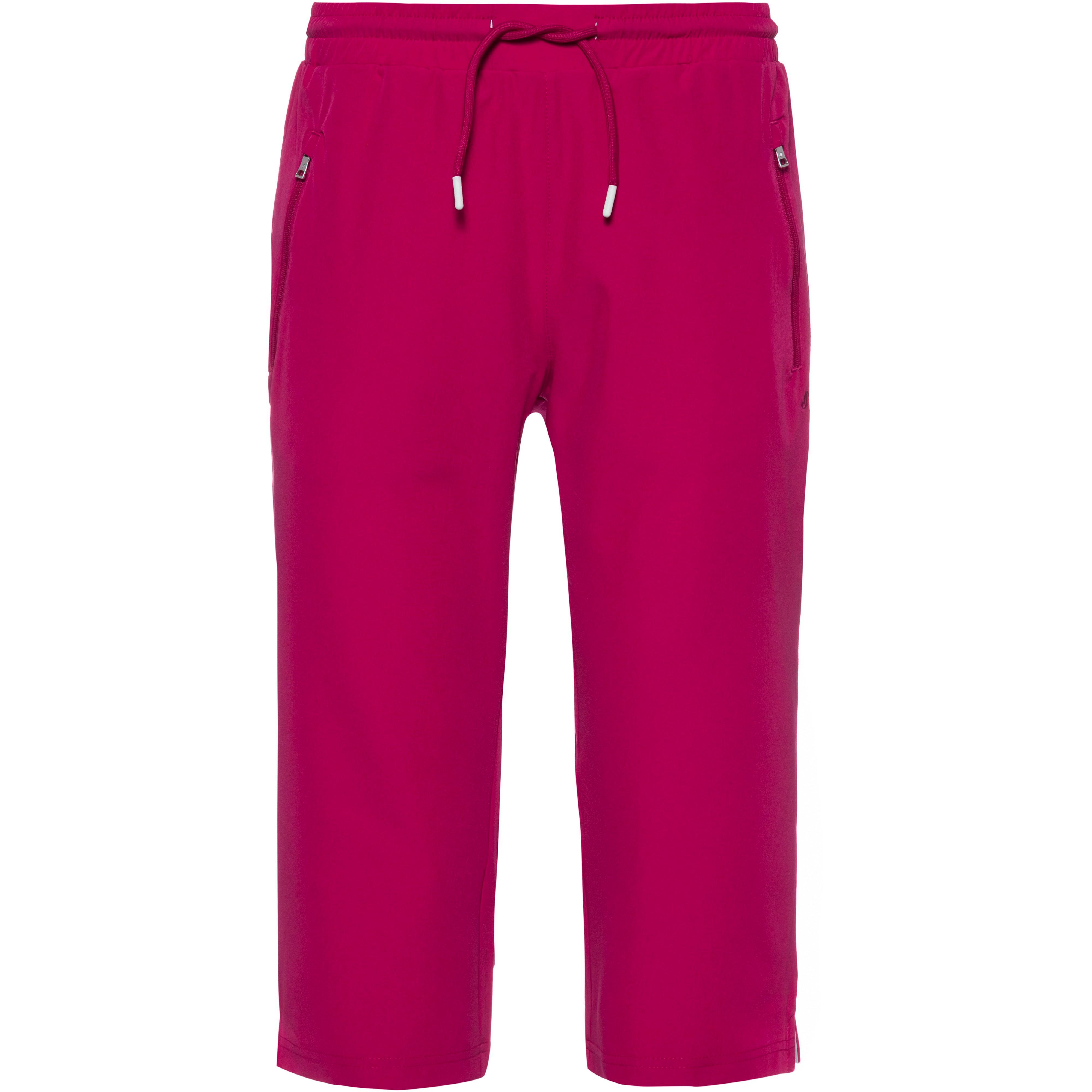 Knielange Trainingshose mit Recyclingmaterial; weitenregulierbarer Elastikbund mit Kordelzug; 2 seitliche Reißverschlusstaschen; Beinabschlüsse mit seitlichen Schlitzen für optimale Bewegungsfreiheit; Material 92% Polyester, 8% Elastan.