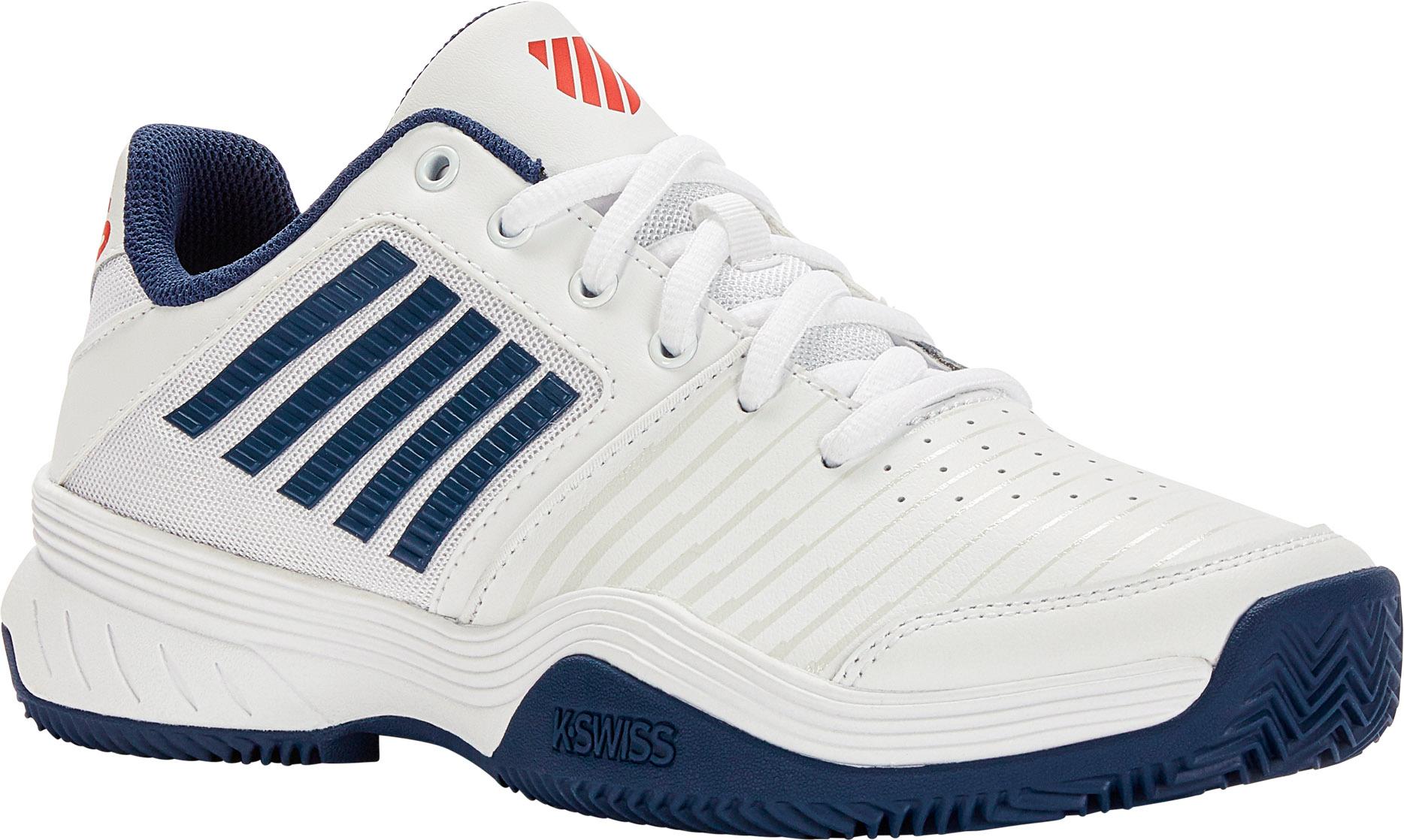 Tennisschuhe aus echtem Leder mit Einsätzen aus atmungsaktivem Mesh; klassische Schnürung; Logodetail; Textilfutter; dämpfende CMEVA-Zwischensohle; Gummi-Außensohle mit tiefem, durchgehendem Fischgrätprofil für optimalen Grip auf dem Platz.