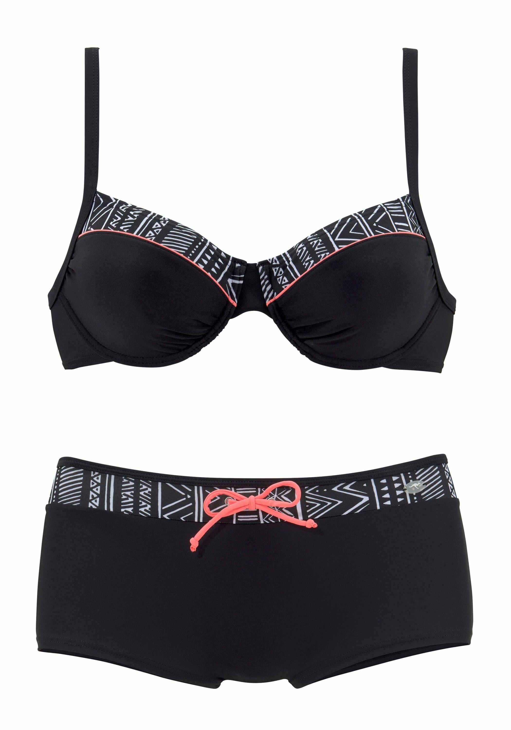 Bügel-Bikini von KangaROOS im trendigen Design in Schwarz kombiniert mit einem Druck im Ethno-Look. Top mit verstellbaren Trägern.