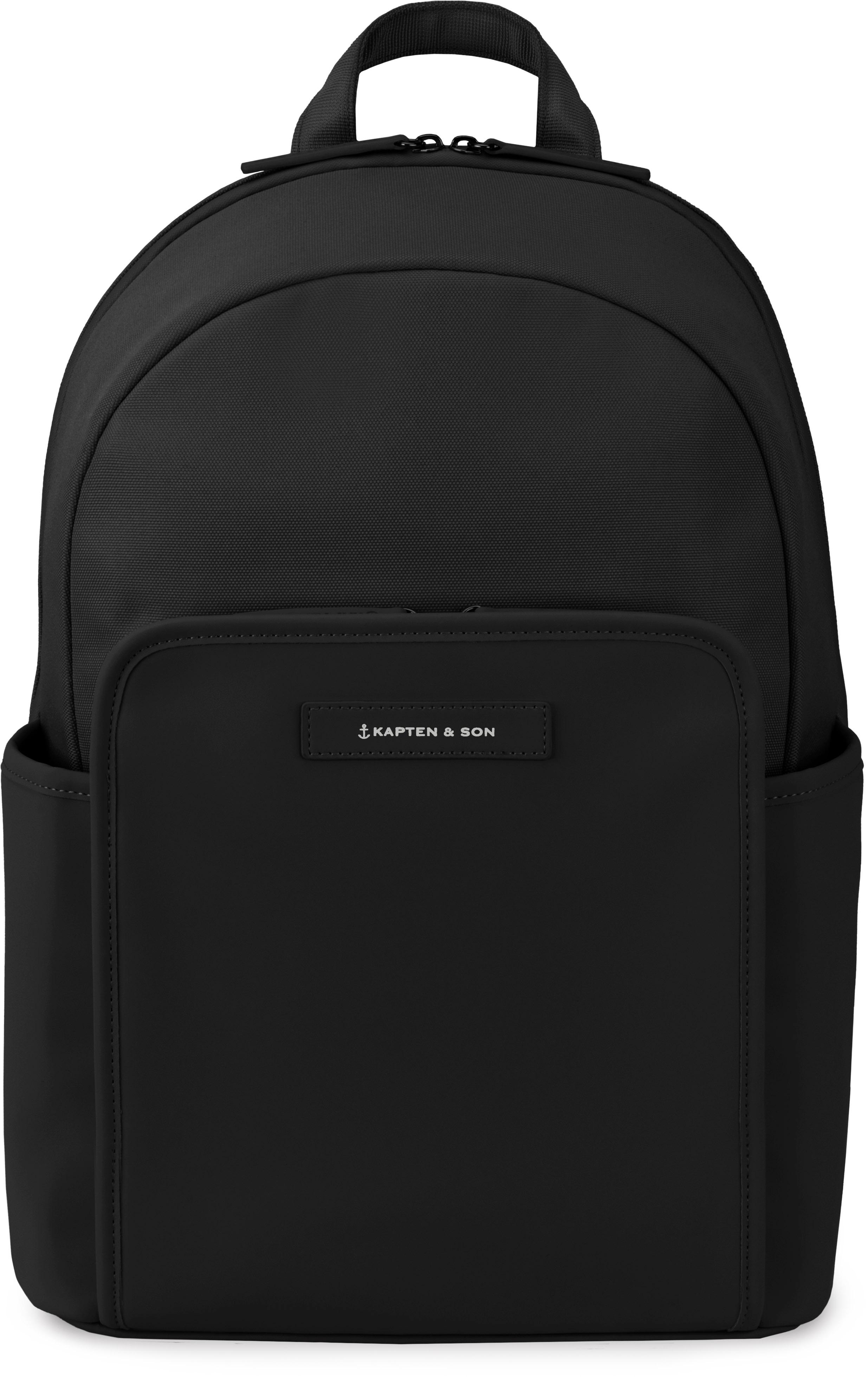 Stylisher Daypack in minimalistischem Design; Hauptfach mit 2-Wege-Reißverschluss; gepolstertes 14 Zoll-Laptopfach (Maße: ca. (34 x 25,5 x 3 cm) und 3 weitere Innenfächer; 1 Fronttasche mit 2 weiteren Innentaschen; 2 Außentaschen; verstellbare Schultergurte; 1 Tragehenkel; Logodetail; aus wasserabweisendem, veganem Tech-Material und recyceltem PET; Volumen; 12 l; Maße: (H/B/T): ca. 42 x 29 x 12 cm.