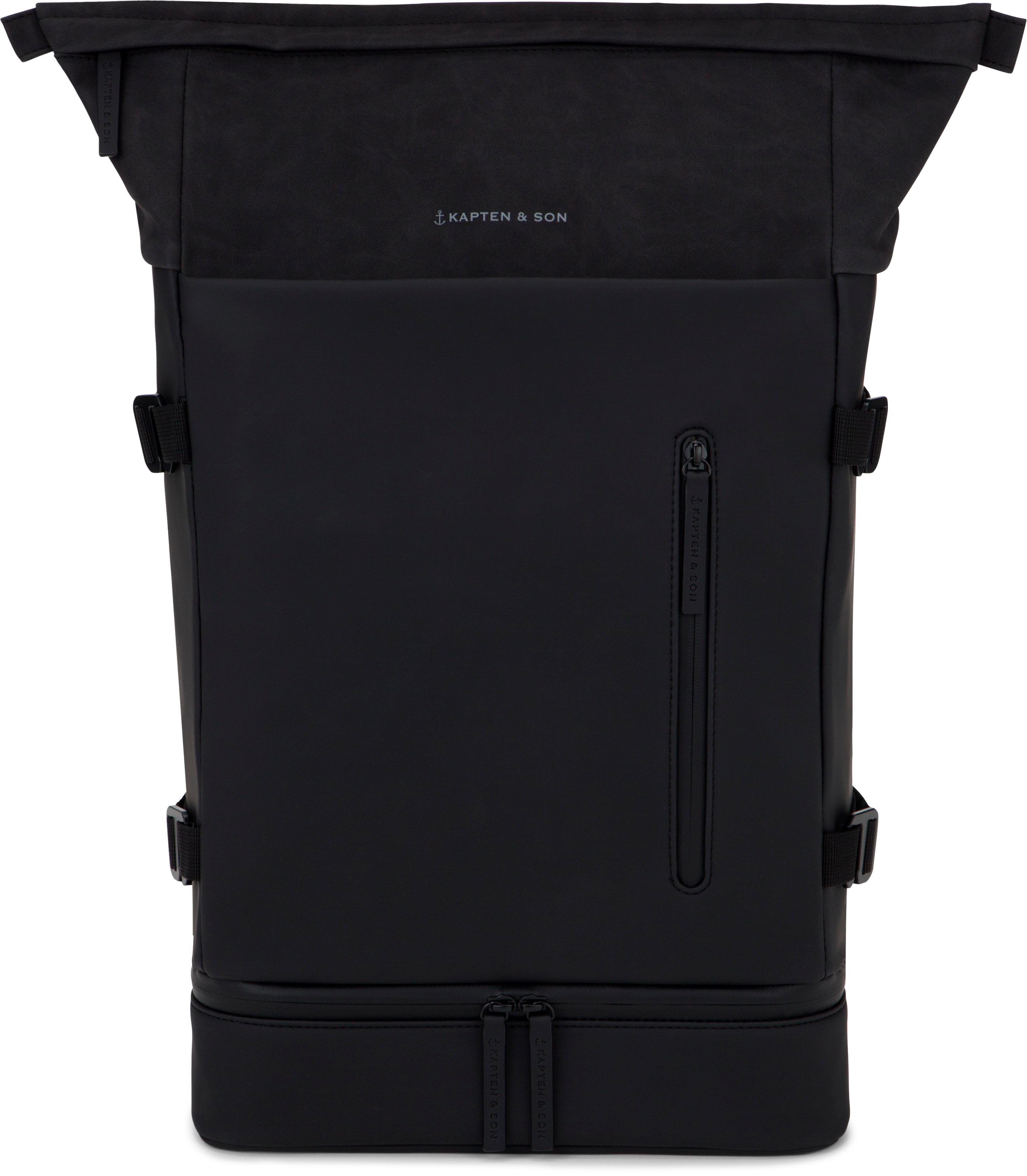 Funktioneller Daypack aus wasserabweisendem, veganen Tech-Material mit wasserabweisenden Reißverschlüssen; Hauptfach mit Reißverschluss; 4 Innenfächer, 2 davon mit Reißverschluss; 15 Zoll-Laptopfach; 1 Außenfach mit Reißverschluss; 1 separates Bodenfach; Rückenteil und verstellbare Schultergurte gepolstert; 1 Tragehenkel; Logodetail; Seitenriemen; Volumen: ca. 26 l; Maße (H/B/T): ca. 53,5 x 32 x 17 cm; Material 100% Polyester.
