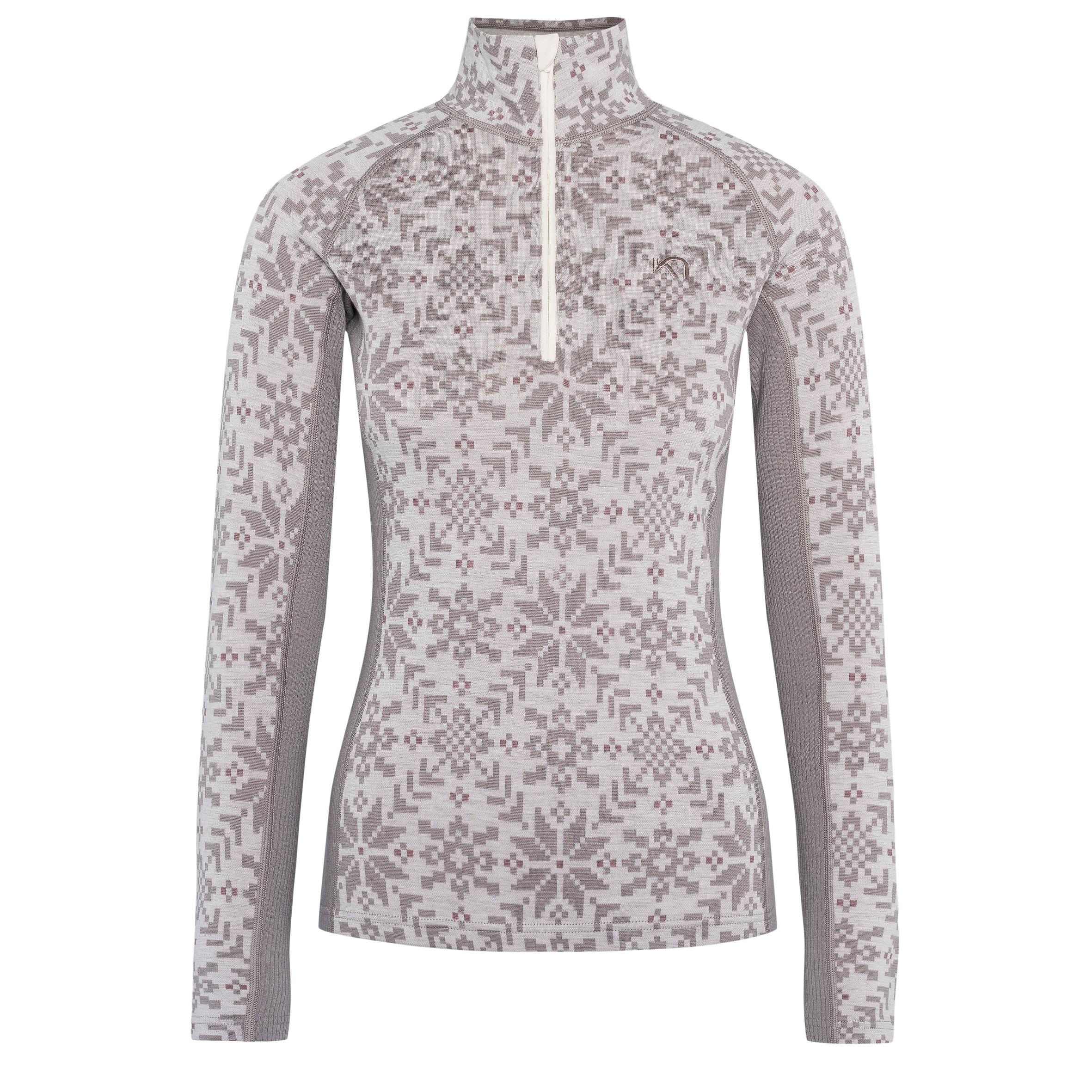Der Kari Traa 'Edith' Half Zip ist ein vielseitiger und funktionaler Damen-Baselayer aus 100 % hochwertiger Wolle, der speziell für sportliche Aktivitäten bei kühlem Wetter entwickelt wurde. Das Material ist von Natur aus atmungsaktiv und temperaturregulierend, sodass es an kalten Tagen angenehm warm hält, ohne dass es zu einem Hitzestau kommt. Gleichzeitig bietet der Half Zip durch die natürlichen Eigenschaften der Wolle eine hohe Atmungsaktivität und sorgt dafür, dass Feuchtigkeit effektiv abtransportiert wird. Der Baselayer ist mit speziellen Stretcheinsätzen unter den Achseln und an anderen wichtigen Stellen ausgestattet, die eine optimale Passform und uneingeschränkte Bewegungsfreiheit ermöglichen. Dies sorgt für einen hohen Tragekomfort, egal ob beim Skifahren, Wandern oder anderen Outdoor-Aktivitäten. Die weiche Wolle liegt sanft auf der Haut und verhindert unangenehmes Kratzen, was den Tragekomfort zusätzlich erhöht. Das atemberaubende nordische Design im femininen Look macht 'Edith' auch optisch zu einem echten Highlight. Dieses strapazierfähige und funktionale Oberteil ist daher die ideale Wahl für alle Damen, die Wert auf Qualität, Komfort und Stil legen, und eignet sich perfekt als Baselayer oder als alleinstehendes Oberteil an milderen Tagen.