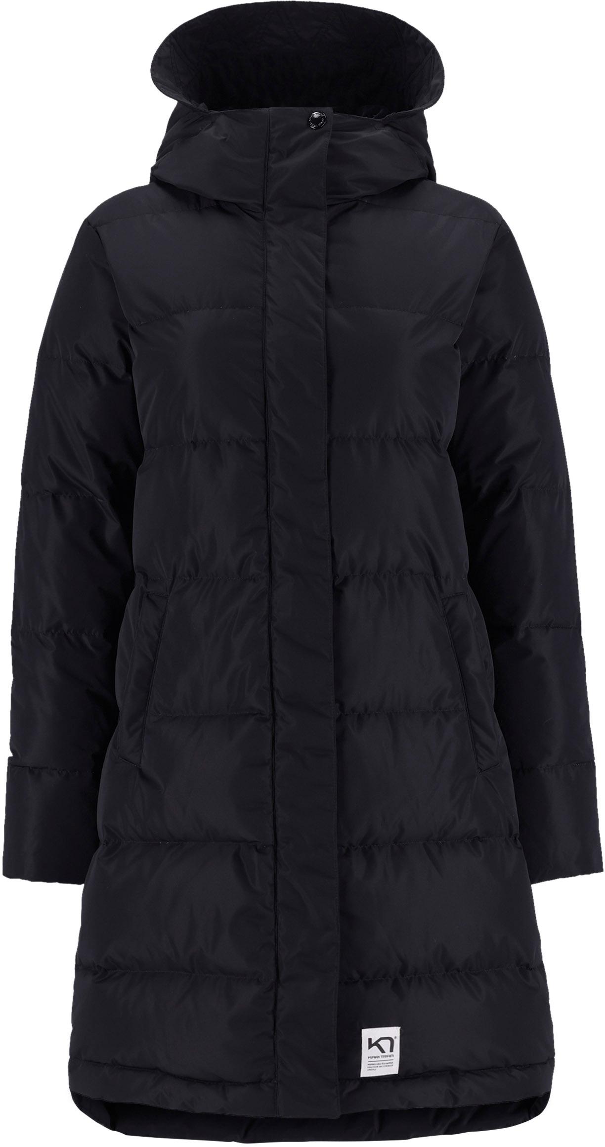 Steppmantel mit warmer Daunenfüllung und großzügiger Kapuze; durchgehender Frontreißverschluss mit Windschutzblende; hochabschließender Kragen; Ärmel mit elastischen Innenbündchen; 2 Taschen; kleine Label-Applikation; enthält nichttextile Teile tierischen Ursprungs; Obermaterial 100% Polyester, Einsätze 91% Polyester, 9% Elastan, Füllung 60% Daune, 40% Federn.
