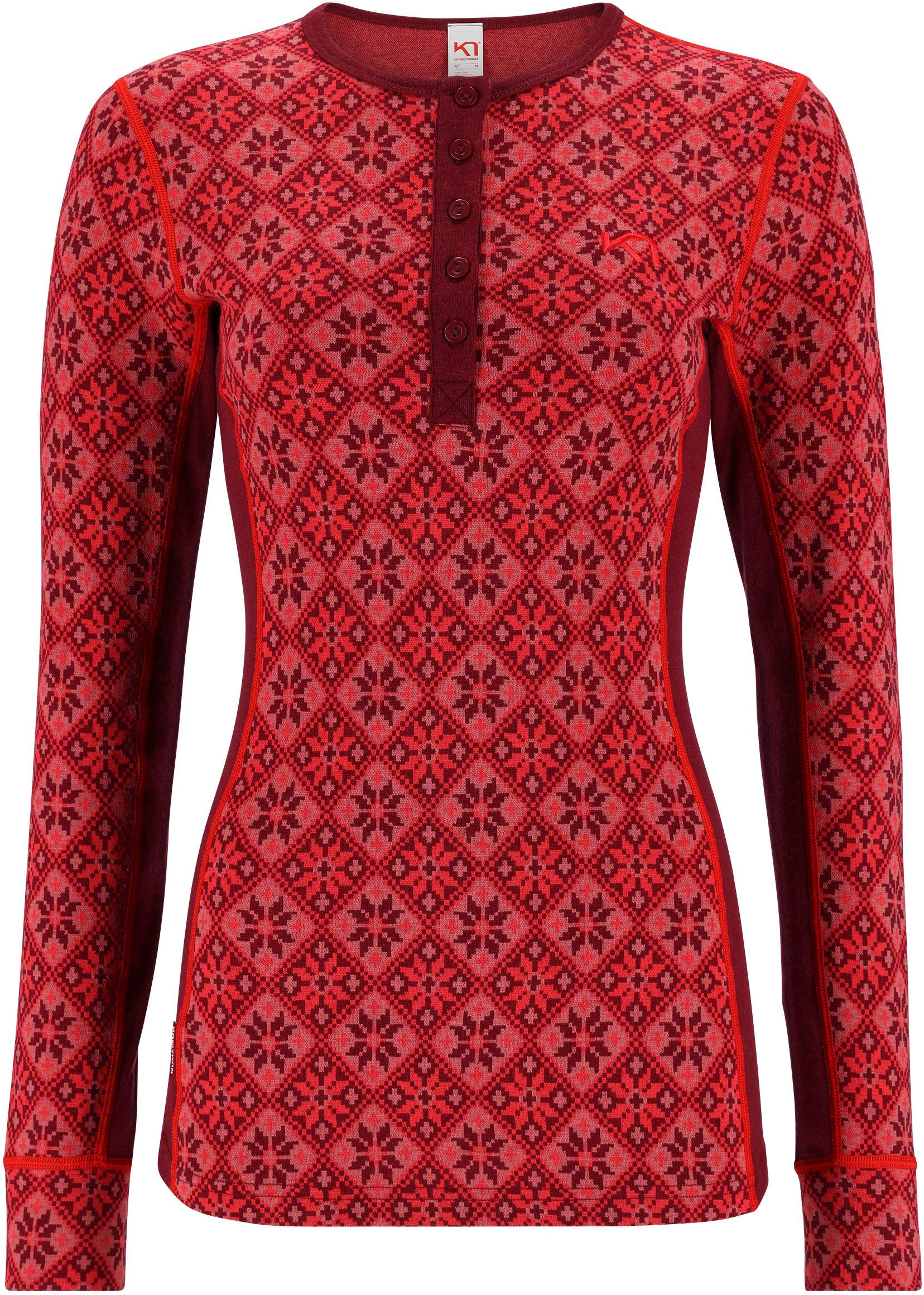 Langärmliges Funktionsshirt aus weicher Merinowolle mit Norwegermuster, Rundhalsausschnitt; halbe Knopfleiste; Kontrastnähte; atmungsaktiv; natürlich geruchsabweisend; wärmend; Logo auf der Brust; schmale Passform; Material 100% Wolle (Merinowolle).