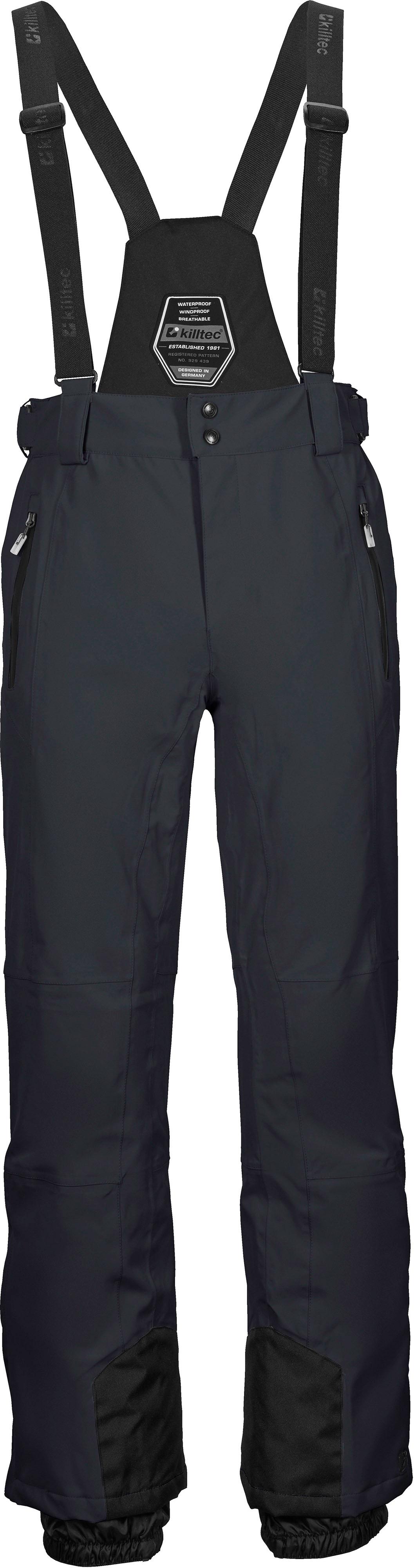 Skihose mit verstellbaren und abnehmbaren Trägern; atmungsaktiv, wind- und wasserdicht; verschweißte Nähte; Wassersäule 10.000 mm; Taille individuell regulierbar; 2 Seitentaschen mit Reißverschluss; 2-Wege-Stretch-Material; Beinabschlüsse mit praktischem Kantenschutz, Klettverschlüssen und rutschfestem Schneefang; ohne PFC hergestellte Imprägnierung; Material I 100% Polyester, Material II 96% Polyester, 4% Elastan.