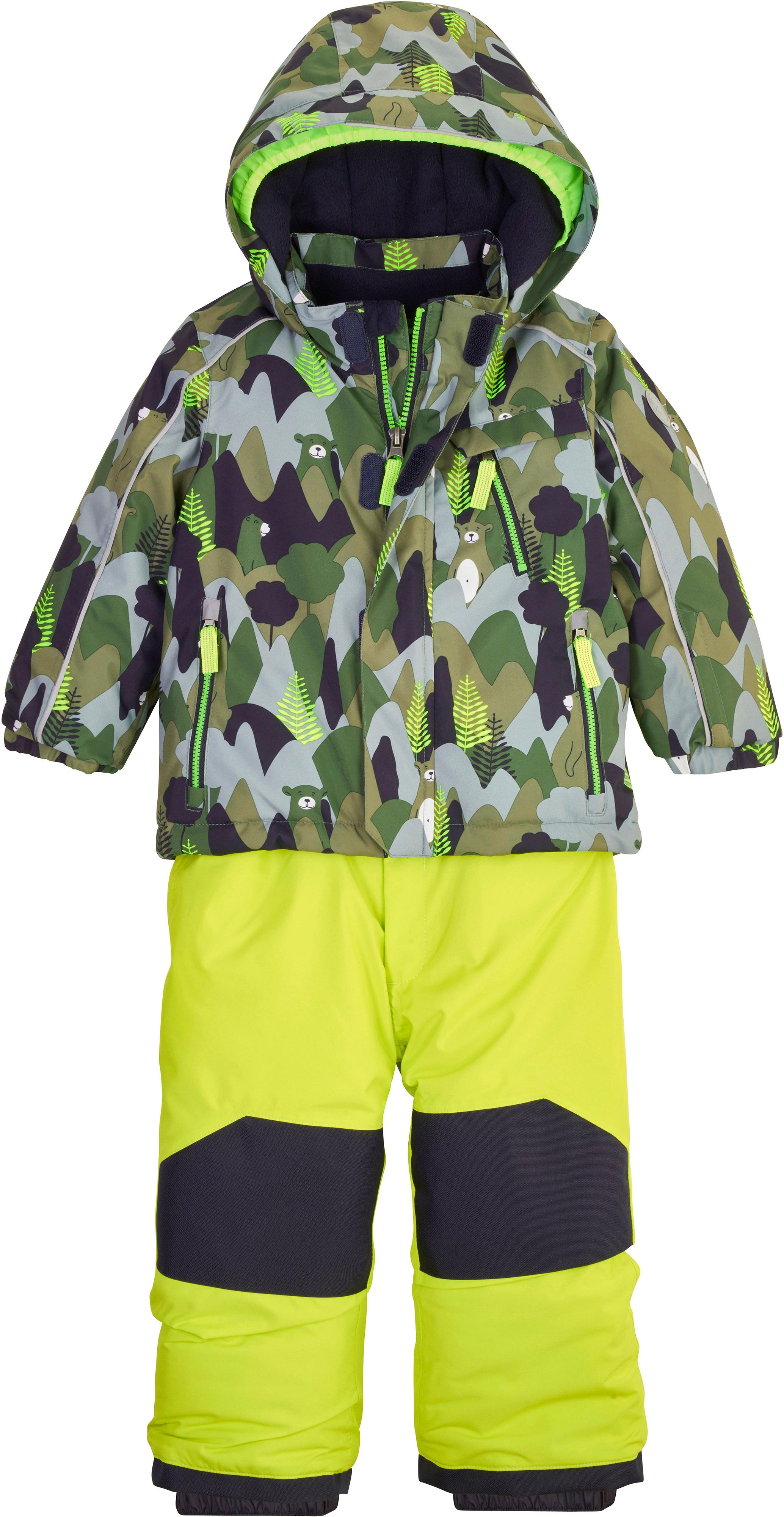 Zweiteiliger Skianzug für Kinder; Jacke und Hose können einzeln getragen oder per Reißverschluss miteinander verbunden werden; wasser- und winddicht sowie atmungsaktiv; ohne PFC hergestellt imprägniert; beide Teile mit weichem Fleecefutter; Jacke mit buntem Muster; abzippbare Kapuze mit Gummizug für einen sicheren Sitz; Frontreißverschluss mit Windschutzleiste; zahlreiche Taschen; Kantenschutz; dank Grow-Up-Funktion lassen sich Ärmel und Hosenbeine ca. 4 cm verlängern, sodass der Anzug um eine Kleidergröße mitwächst; reflektierende Elemente; Obermaterial, Futter und Isolierung 100% Polyester.