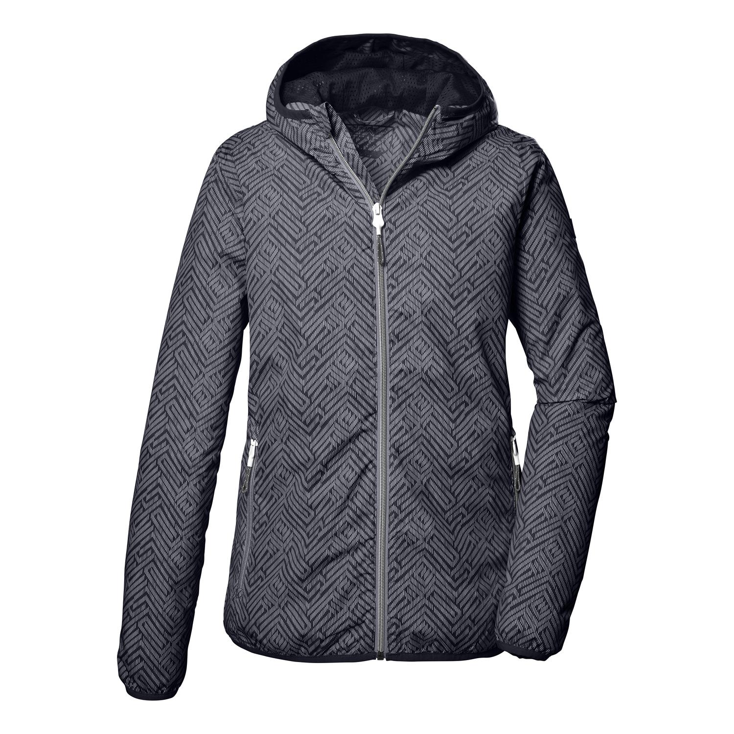 Packbare Damen Funktionsjacke2-Wege-Stretch für mehr Bewegungsfreiheitwasserdicht, verschweißte Nähte, Wassersäule 10.000mmatmungsaktiv, Wasserdampfdurchlässigkeit 3.000 g/m²/24 hPFAs-freie Imprägnierung – gut für dich und die UmweltName: KOS 69 WMN JCKTSaison: Frühjahr/SommerDie leichte Damen Funktionsjacke punktet durch den besonderen All Over-Print mit farblich abgesetzten Details und funktionelle Eigenschaften. Die Jacke ist dank verschweißter Nähte und einer 10.000 mm Wassersäule 100% wasser- und winddicht. Gleichzeitig ist sie atmungsaktiv mit einer Wasserdampfdurchlässigkeit von 3.000 g/m²/24 h. Das 2-Wege-Stretchmaterial sorgt für viel Bewegungsfreiheit. Die beiden Seitentaschen sind mit Zippern versehen, sodass nichts verloren geht. Zudem ist die Jacke packbar: Sie lässt sich komplett in eine eigene Tasche verstauen und so bequem überall mit hinnehmen. killtec liegt es besonders am Herzen, die Kollektionen nachhaltiger und zukunftsfähiger zu machen. So setzt killtec verstärkt auf verantwortungsbewusstere Herstellungsverfahren. Diese Jacke wurde daher mit fluorfreien Mitteln imprägniert und aus recyceltem Material gefertigt.