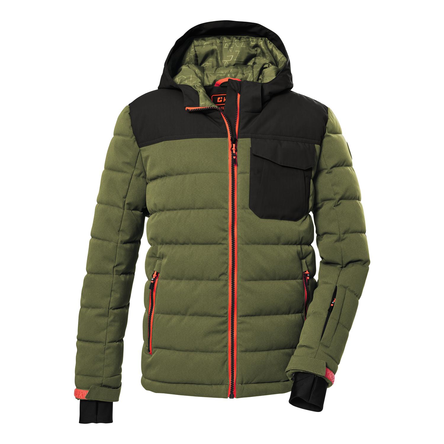 Junior Winter-Steppjacke, Colourblock Design 10.000 mm Wassersäule, wasserabweisend winddicht, atmungsaktiv (3.000 g/m²/24h) rutschfester Schneefang, Mesh-Einsatz, diverse Taschen wasserdichter Reißverschluss mit Regenablaufleiste Name: KSW 123 BYS SKI QLTD JCKT Saison: Herbst/Winter Mit der warm gefütterten killtec Winterjacke in Steppoptik und im angesagten Colourblock Design sind dem Wintervergnügen keine Grenzen gesetzt. Sie ist wasserabweisend, winddicht und atmungsaktiv (10.000 mm, 3.000 g/m²/24 h). Der temperaturregulierende Mesh-Einsatz verspricht ein angenehmes Körperklima. Der wasserdichte Reißverschluss ist mit einer Regenablaufleiste sowie einem Kinnschutz ausgestattet. Der Gummizug an der regulierbaren Kapuze sorgt für einen guten Sitz. Lycracuffs an den verstellbaren Ärmelbündchen und der rutschfeste Schneefang verhindern das Eindringen von Wind und Nässe. Zahlreiche Taschen bieten genügend Stauraum für alle wichtigen Dinge wie Handy, Skipass und Co. Durch einen Kordelzug lässt sich die Weite des Saumes verstellen. killtec liegt es besonders am Herzen die Kollektionen nachhaltiger und zukunftsfähiger zu machen. So setzt killtec verstärkt auf verantwortungsbewusstere Herstellungsverfahren. Diese Jacke wurde daher mit fluorfreien Mitteln imprägniert.