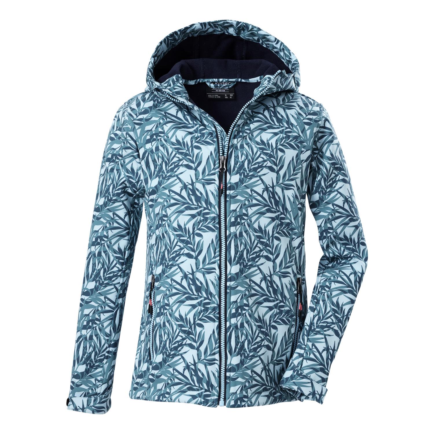 Mädchen Softshelljacke mit Kapuze und modischem Print Wassersäule 10.000 mm, wasserabweisend verstellbare Ärmelbündchen Innen mit weichem Fleece PFAS-freie Imprägnierung - gut für dich und die Umwelt Name: Mädchen Softshelljacke Print Saison: Ganzjahr Die Mädchen Softshelljacke mit Kapuze von killtec vereint Funktionalität und Stil. Das hochwertige PU-Laminat mit einer Wassersäule von 10.000 mm sorgt dafür, dass die Jacke zuverlässig wasser- und windabweisend ist. Ideal für die Übergangszeit, bietet sie zuverlässig Schutz vor Wind und leichtem Regen. Der Kinnschutz am Frontreißverschluss verhindert ein Einklemmen der Haut, während der Saum mit Kordelzug eine bequeme Weitenregulierung ermöglicht. Die Softshelljacke überzeugt nicht nur durch ihre funktionalen Eigenschaften, sondern auch durch durchdachte Details und den modischen Print. Der Einsatz von Mesh sorgt für optimale Atmungsaktivität, während das warme Fleece im Rückenbereich und der Fleece-Einsatz in der Kapuze für wohlige Wärme sorgen. killtec liegt es besonders am Herzen, die Kollektionen nachhaltiger und zukunftsfähiger zu machen. So setzt killtec verstärkt auf verantwortungsbewusstere Herstellungsverfahren. Diese Jacke wurde daher mit PFAS-frei imprägniert!