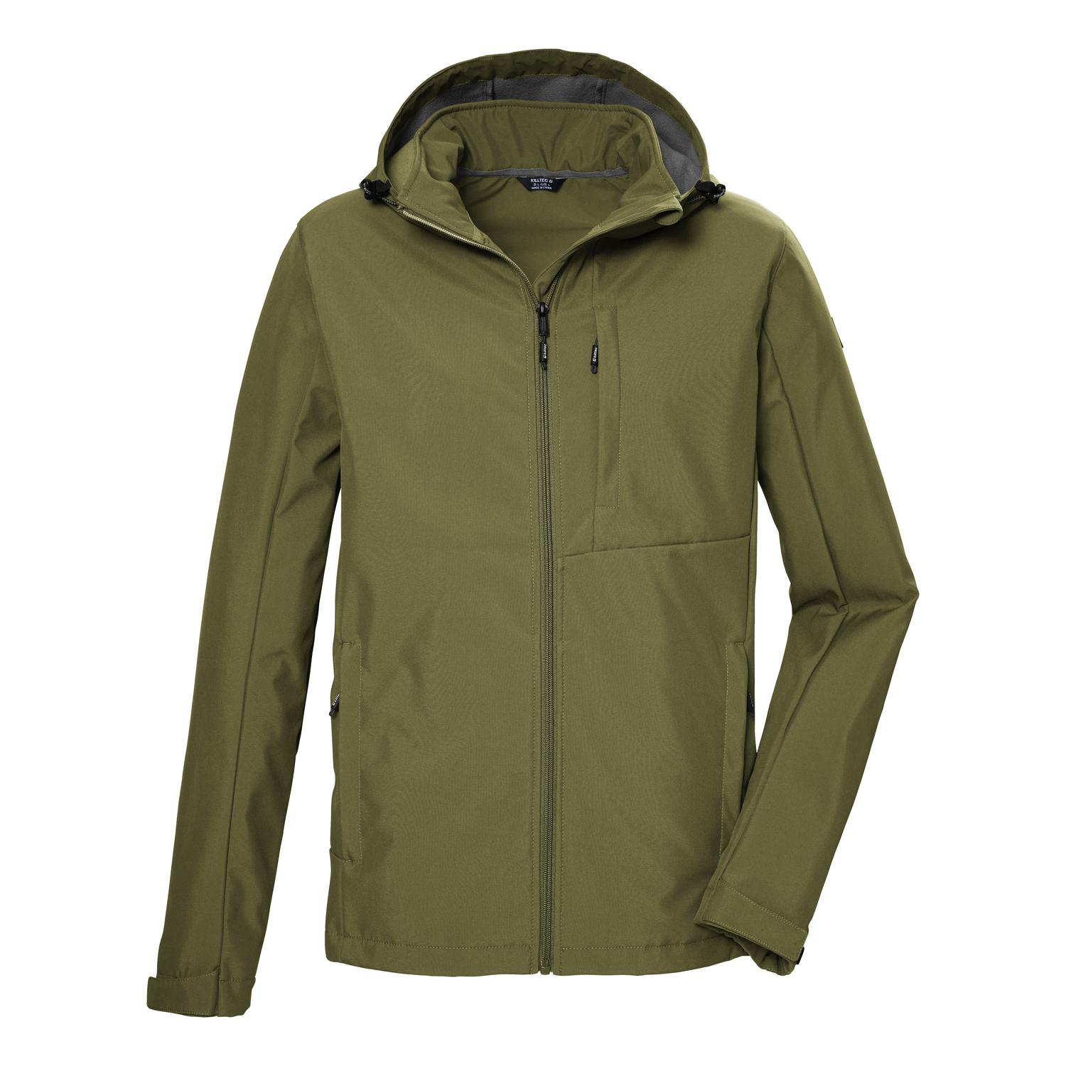 Softshelljacke mit regulierbarer Kapuze wasserabweisend (Wassersäule 10.000 mm), winddicht atmungsaktiv, Wasserdampfdurchlässigkeit 3.000 g/m²/24h PFAS-freie Imprägnierung – gut für dich und die Umwelt Ärmelbündchen und Saum regulierbar Taschen mit Zippern, Reißverschluss mit Kinnschutz weiches Fleece im Rückenbereich Name: KOS 103 MN SFTSHLL JCKT Saison: Frühjahr/Sommer Mit der Herren Softshelljacke mit regulierbarer Kapuze ist man bei Wind und Wetter geschützt. Sie ist wasserabweisend, winddicht und dabei atmungsaktiv (Wassersäule 10.000 mm, Wasserdampfdurchlässigkeit 3.000 g/m²/24h). Der Rückenbereich ist mit weichem Fleece gefüttert. Die Ärmelbündchen sind anhand von Klettverschlüssen verstellbar, der Saum kann durch einen Kordelzug reguliert werden. Der Frontreißverschluss ist mit einem Kinnschutz versehen, der ein Einklemmen der Haut verhindert. Die beiden Seitentaschen und die Brusttasche sind mit Zippern verschließbar. killtec liegt es besonders am Herzen, die Kollektionen nachhaltiger und zukunftsfähiger zu machen. So setzt killtec verstärkt auf verantwortungsbewusstere Herstellungsverfahren. Diese Jacke wurde daher PFAS-frei imprägniert.