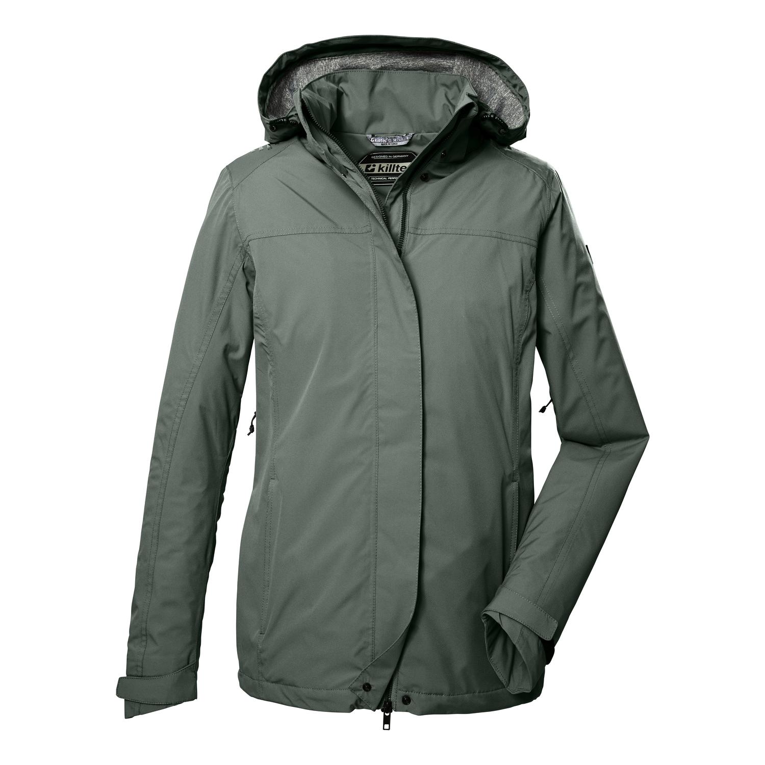 Funktionsjacke mit verstellbarer und abzippbarer Kapuze10.000 mm Wassersäule, verschweißte Nähte, 100% wasserdichtatmungsaktiv, (10.000 g/m²/24h), VentilationsöffnungenAnti-Gliss-Print im SchulterbereichPFAs-freie Imprägnierung – gut für dich und die UmweltÄrmelbündchen und Saum reguierbarName: KOS 11 WMN JCKTSaison: Frühjahr/SommerDie Damen Funktionsjacke von killtec ist ein echtes Multitalent. Sie hat verschweißte Nähte und ist 100% wasser- und winddicht mit einer 10.000 mm Wassersäule. Gleichzeitig ist sie atmungsaktiv mit einer Wasserdampfdurchlässigkeit von 10.000 g/m²/24 h. Zudem sorgen Ventilationsöffnungen für ein angenehmes Körperklima. Die Kapuze lässt sich verstellen und bei Bedarf abnehmen. Die Ärmelbündchen sind durch Klettverschlüsse verstellbar. Der Saum lässt sich mithilfe eines Kordelzuges regulieren. Zwei Zippertaschen und eine Innentasche bieten genügend Stauraum. Der Anti-Gliss-Print auf der Schulter sorgt dafür, dass Taschen nicht herunterrutschen. Der Reißverschluss ist mit einem Kinnschutz versehen. Die Jacke ist außerdem mit modisch reflektierenden Elementen ausgestattet. killtec liegt es besonders am Herzen, die Kollektionen nachhaltiger und zukunftsfähiger zu machen. So setzt killtec verstärkt auf verantwortungsbewusstere Herstellungsverfahren. Diese Jacke wurde daher mit fluorfreien Mitteln imprägniert.