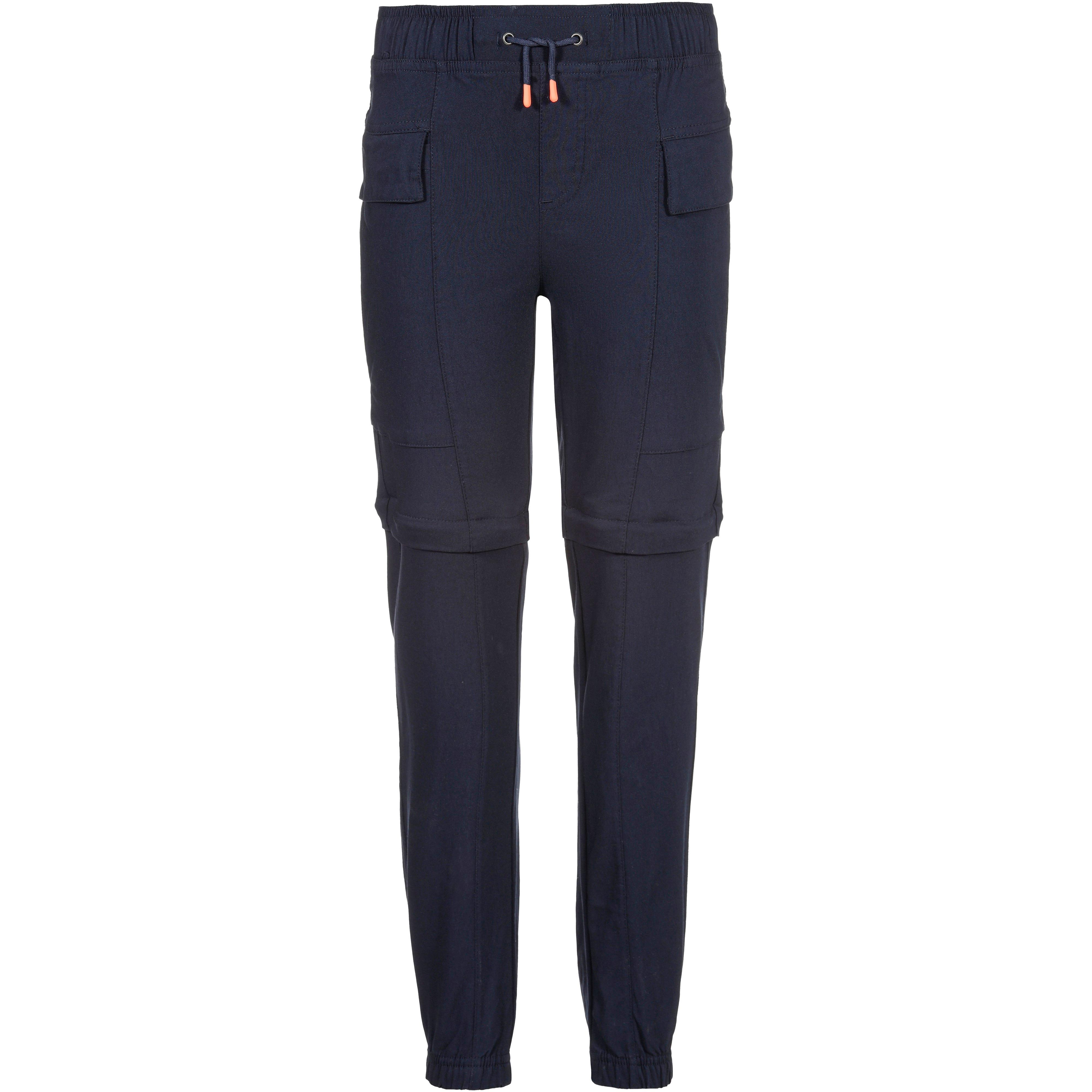 Zipphose mit elastischem Bund und Kordelzug; 2 große aufgesetzte Pattentaschen; mittels Reißverschluss in Shorts umwandelbar; elastische Bündchen; Material 79% Viskose, 18% Polyamid, 3% Elastan.