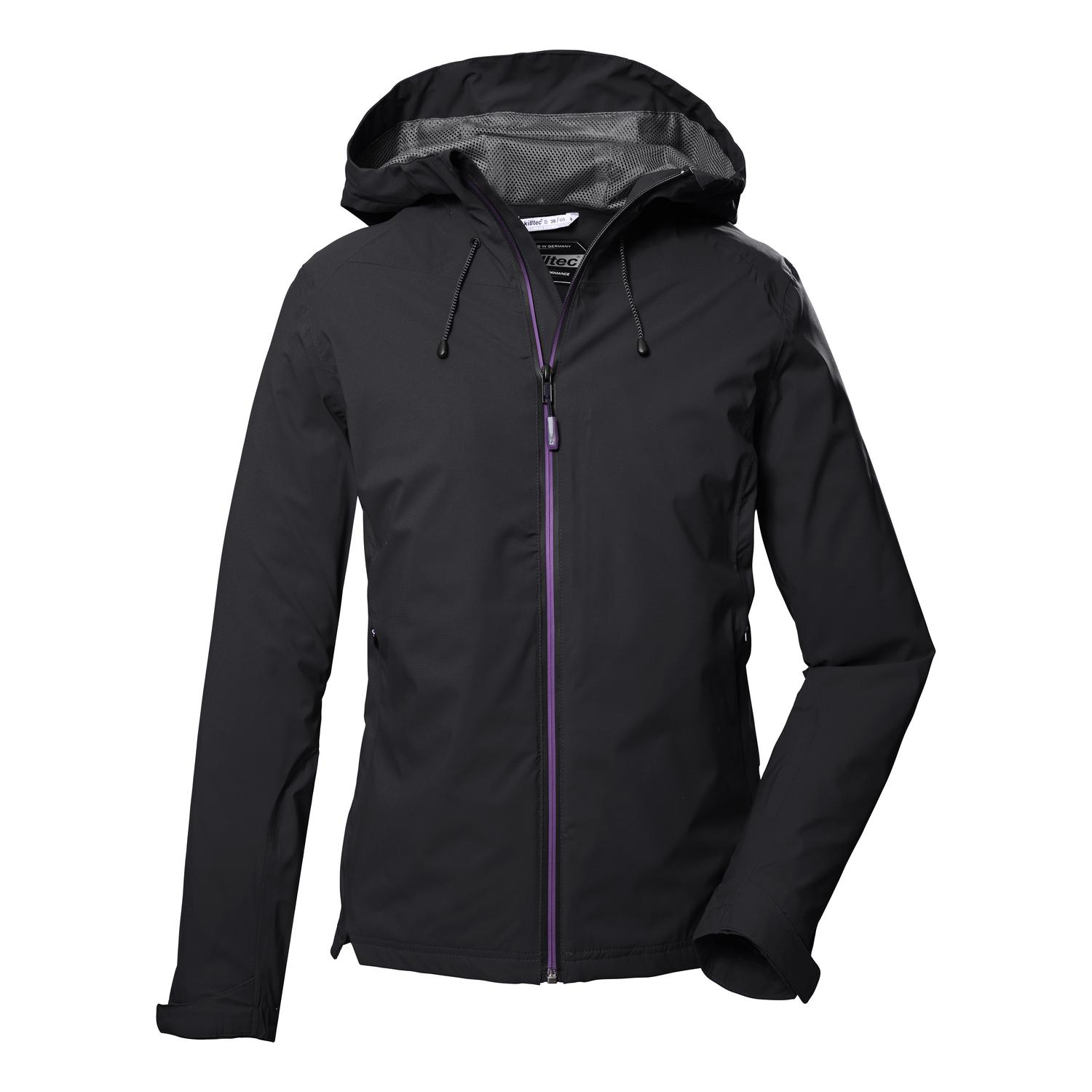 Damen Funktionsjacke mit Kapuze10.000 mm Wassersäule, verschweißte Nähte, 100% wasserdichtUnterarmventilation, atmungsaktiv (10.000 g/m²/24 h)Reißverschluss mit Kinnschutz, Taschen mit ZippernKapuze, Ärmelbündchen und Saum regulierbarPFAs-freie Imprägnierung – gut für dich und die Umweltmodisch reflektierende ElementeName: KOS 23 WMN JCKTSaison: Frühjahr/SommerDie Damen Funktionsjacke von killtec punktet durch ihr schlichtes Design, modisch reflektierende Elemente und funktionale Eigenschaften. Sie ist mit einer 10.000 mm Wassersäule und durch verschweißte Nähte 100% wasser- und winddicht. Außerdem ist sie besonders atmungsaktiv mit einer Wasserdampfdurchlässigkeit von 10.000 g/m²/24 h. Die Unterarmventilation sorgt zusätzlich für ein gutes Körperklima. Der Reißverschluss ist mit einem praktischen Kinnschutz versehen. Kapuze, Saum und Ärmelbündchen sind individuell verstellbar. Die beiden Seitentaschen sind mit Zippern verschließbar, sodass nichts verloren geht. killtec liegt es besonders am Herzen, die Kollektionen nachhaltiger und zukunftsfähiger zu machen. So setzt killtec verstärkt auf verantwortungsbewusstere Herstellungsverfahren. Diese Jacke wurde daher mit fluorfreien Mitteln imprägniert.