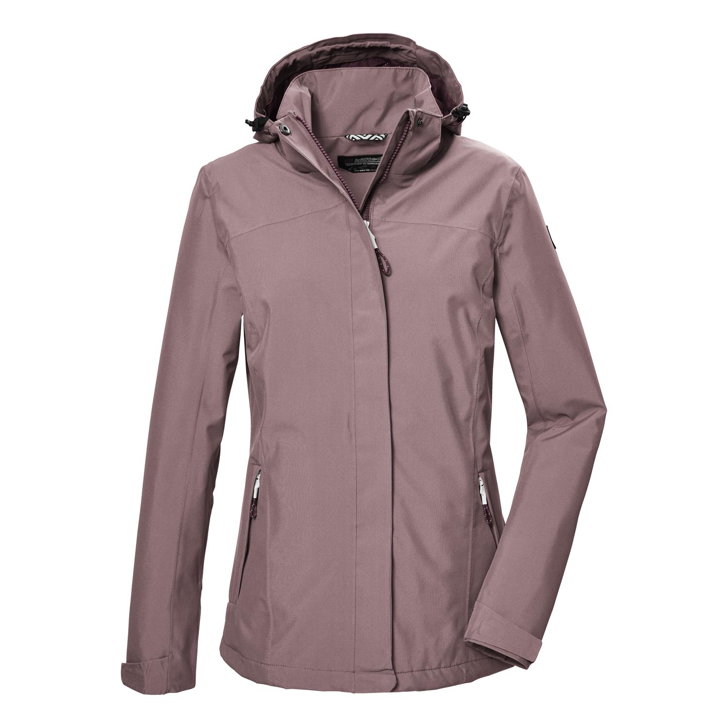Damen Funktionsjacke mit regulierbarer, abzippbarer Kapuze 10.000 mm Wassersäule, verschweißte Nähte, wasserdicht atmungsaktiv, Wasserdampfdurchlässigkeit 3.000 g/m²/24h verstellbare Bündchen, verdeckter Zipper mit Kinnschutz PFAS-freie Imprägnierung und teilweise recyceltes Material Seitentaschen mit Zippern, Handytasche innen Name: KOS 26 WMN JCKT Saison: Frühjahr/Sommer Die Damen Funktionsjacke von killtec ist die perfekte Wahl bei Wind und Wetter. Sie ist mit einer Wassersäule von 10.000 mm und durch verschweißte Nähte wasser- und winddicht (Unser Tipp: ab und zu sollte die Jacke neu imprägniert werden). Gleichzeitig ist sie atmungsaktiv mit einer Wasserdampfdurchlässigkeit von 3.000 g/m²/24 h. Die Kapuze lässt sich regulieren und bei Bedarf ganz abnehmen. Die Ärmelbündchen sind durch Klettverschlüsse verstellbar. Der verdeckte Reißverschluss ist mit einem praktischen Kinnschutz versehen. Die zwei Seitentaschen lassen sich mit Zippern verschließen, sodass nichts verloren geht. Eine Handytasche im Inneren bietet weiteren Stauraum. killtec liegt es besonders am Herzen, die Kollektionen nachhaltiger und zukunftsfähiger zu machen. So setzt killtec verstärkt auf verantwortungsbewusstere Herstellungsverfahren. Diese Jacke wurde daher PFAS-frei imprägniert und teilweise aus recyceltem Material gefertigt.