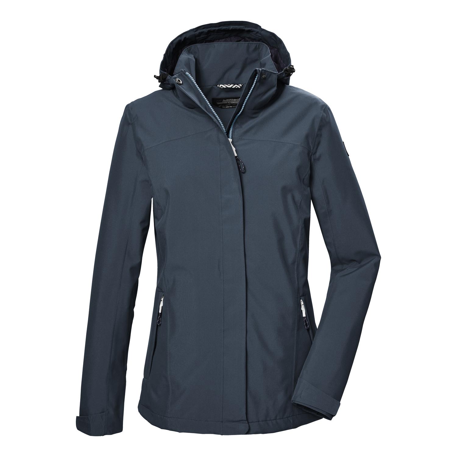 Damen Funktionsjacke mit regulierbarer, abzippbarer Kapuze 10.000 mm Wassersäule, verschweißte Nähte, wasserdicht atmungsaktiv, Wasserdampfdurchlässigkeit 3.000 g/m²/24h verstellbare Bündchen, verdeckter Zipper mit Kinnschutz PFAS-freie Imprägnierung und teilweise recyceltes Material Seitentaschen mit Zippern, Handytasche innen Name: KOS 26 WMN JCKT Saison: Frühjahr/Sommer Die Damen Funktionsjacke von killtec ist die perfekte Wahl bei Wind und Wetter. Sie ist mit einer Wassersäule von 10.000 mm und durch verschweißte Nähte wasser- und winddicht (Unser Tipp: ab und zu sollte die Jacke neu imprägniert werden). Gleichzeitig ist sie atmungsaktiv mit einer Wasserdampfdurchlässigkeit von 3.000 g/m²/24 h. Die Kapuze lässt sich regulieren und bei Bedarf ganz abnehmen. Die Ärmelbündchen sind durch Klettverschlüsse verstellbar. Der verdeckte Reißverschluss ist mit einem praktischen Kinnschutz versehen. Die zwei Seitentaschen lassen sich mit Zippern verschließen, sodass nichts verloren geht. Eine Handytasche im Inneren bietet weiteren Stauraum. killtec liegt es besonders am Herzen, die Kollektionen nachhaltiger und zukunftsfähiger zu machen. So setzt killtec verstärkt auf verantwortungsbewusstere Herstellungsverfahren. Diese Jacke wurde daher PFAS-frei imprägniert und teilweise aus recyceltem Material gefertigt.