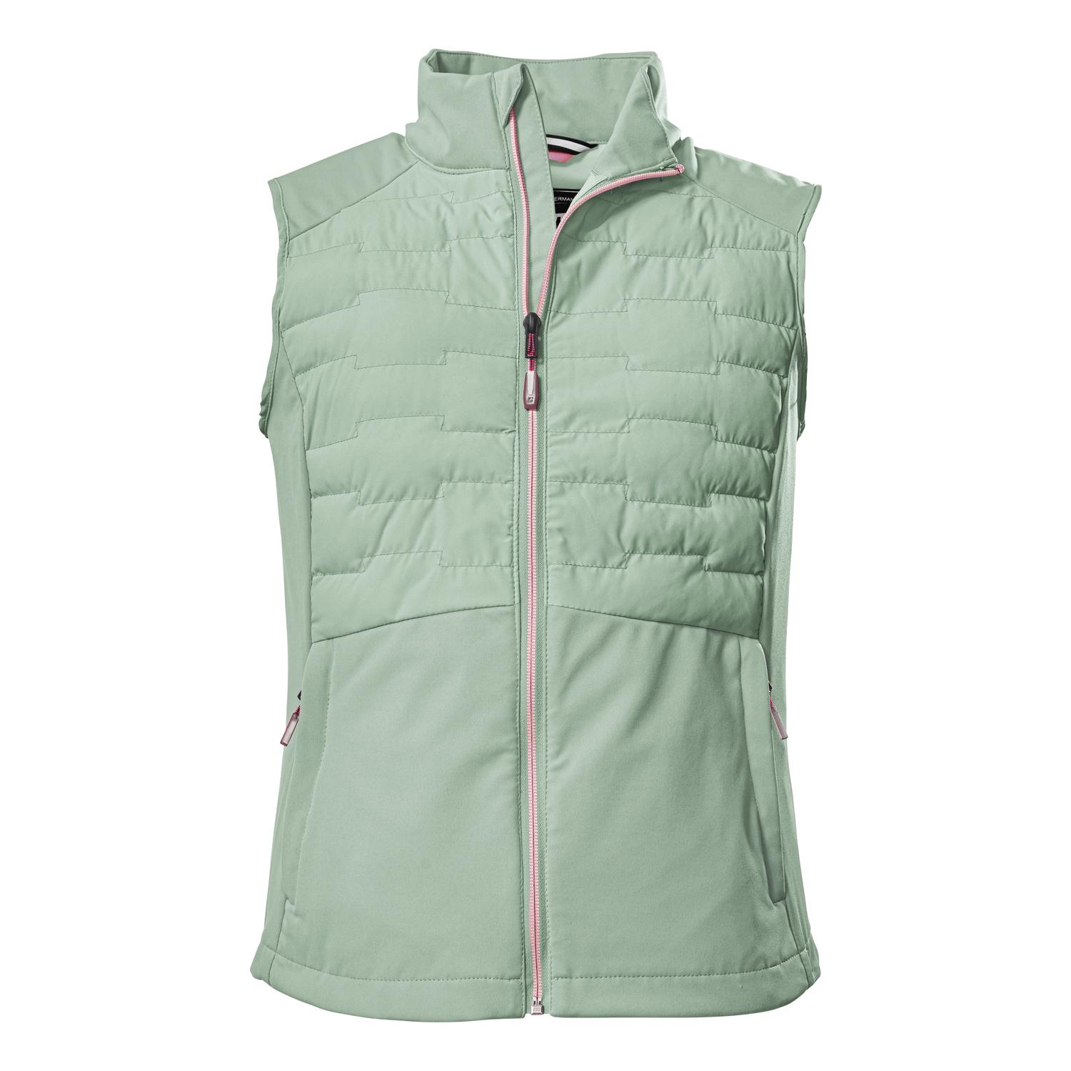 Damen Hybridweste mit Stehkragenwasserabweisend und winddicht, Wassersäule 10.000 mmWasserdampfdurchlässigkeit 10.000 g/m²/24 hReißverschluss mit Kinnschutz, Taschen mit ZippernPFAs-freie Imprägnierung - gut für dich und die UmweltName: KOS 26 WMN VSTSaison: Frühjahr/SommerDie Damen Weste mit Stehkragen von killtec fällt durch ihren lässigen Hybridoptik und reflektierende Elemente auf. Sie bietet einen hohen Tragekomfort durch ihren Stretch-Anteil und ist mit einer 10.000 mm Wassersäule wasserabweisend und winddicht. Die Wasserdampfdurchlässigkeit von 10.000 g/m²/24 h sorgt für ein gutes Körperklima. Der Reißverschluss ist mit einem Kinnschutz versehen, der ein Einklemmen der Haut verhindert. Die zwei Eingrifftaschen sind mit Zippern verschließbar, sodass nichts verloren geht. killtec liegt es besonders am Herzen, die Kollektionen nachhaltiger und zukunftsfähiger zu machen. So setzt killtec verstärkt auf verantwortungsbewusstere Herstellungsverfahren. Diese Weste wurde daher mit fluorfreien Mitteln imprägniert.
